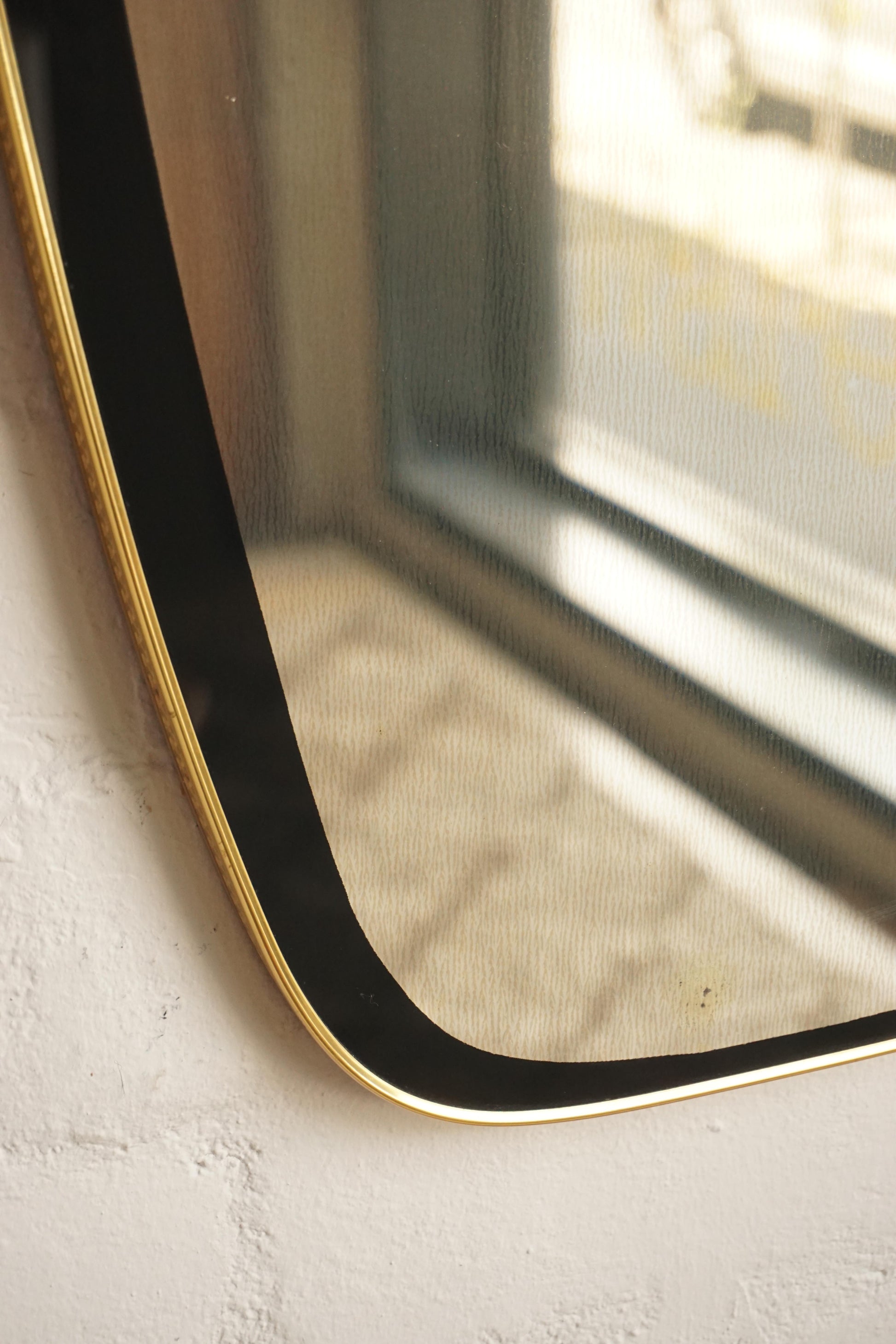 Brass anodised framed mirror c.1950s Germany. Faint and even hazing to the original glass creates a lovely effect.