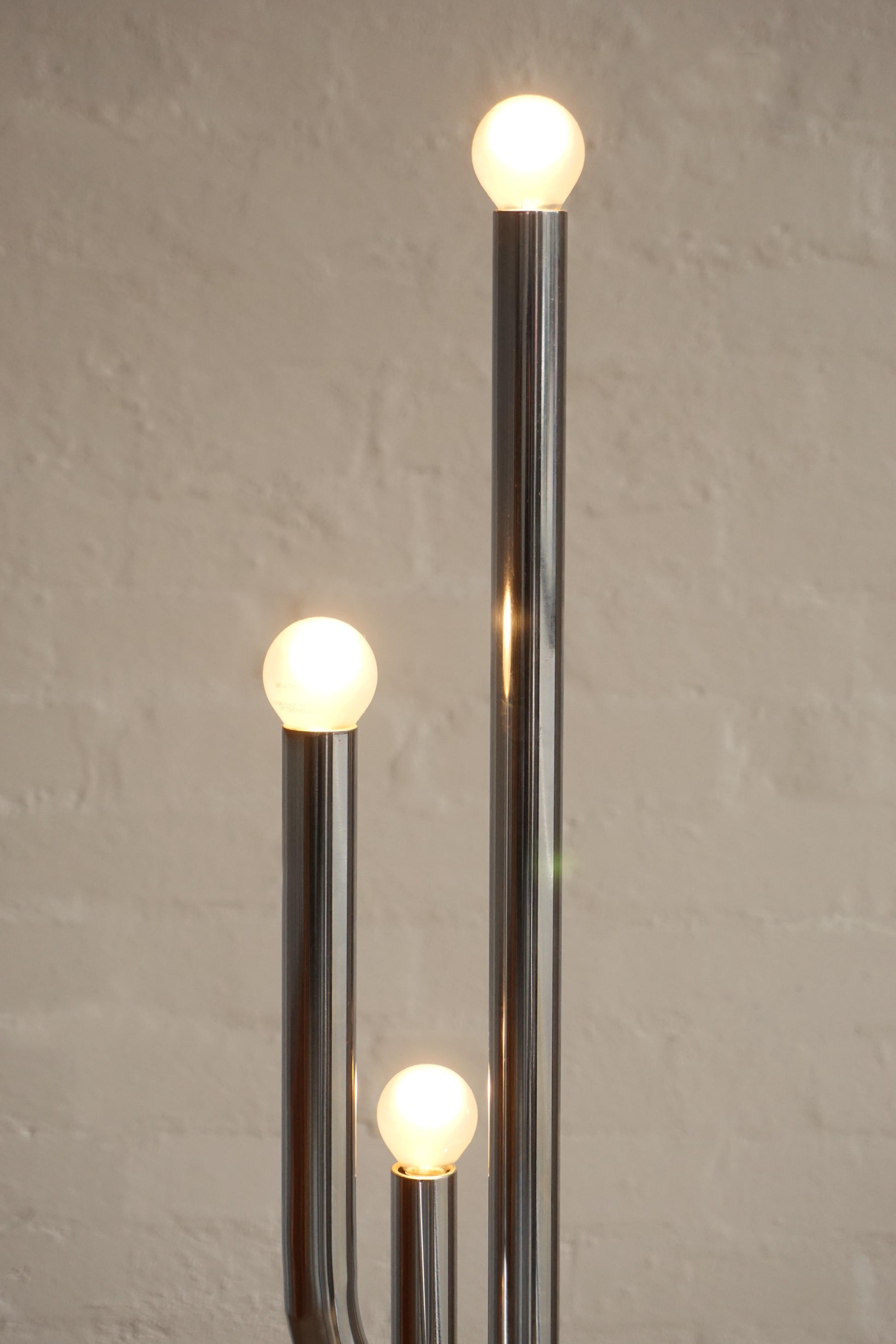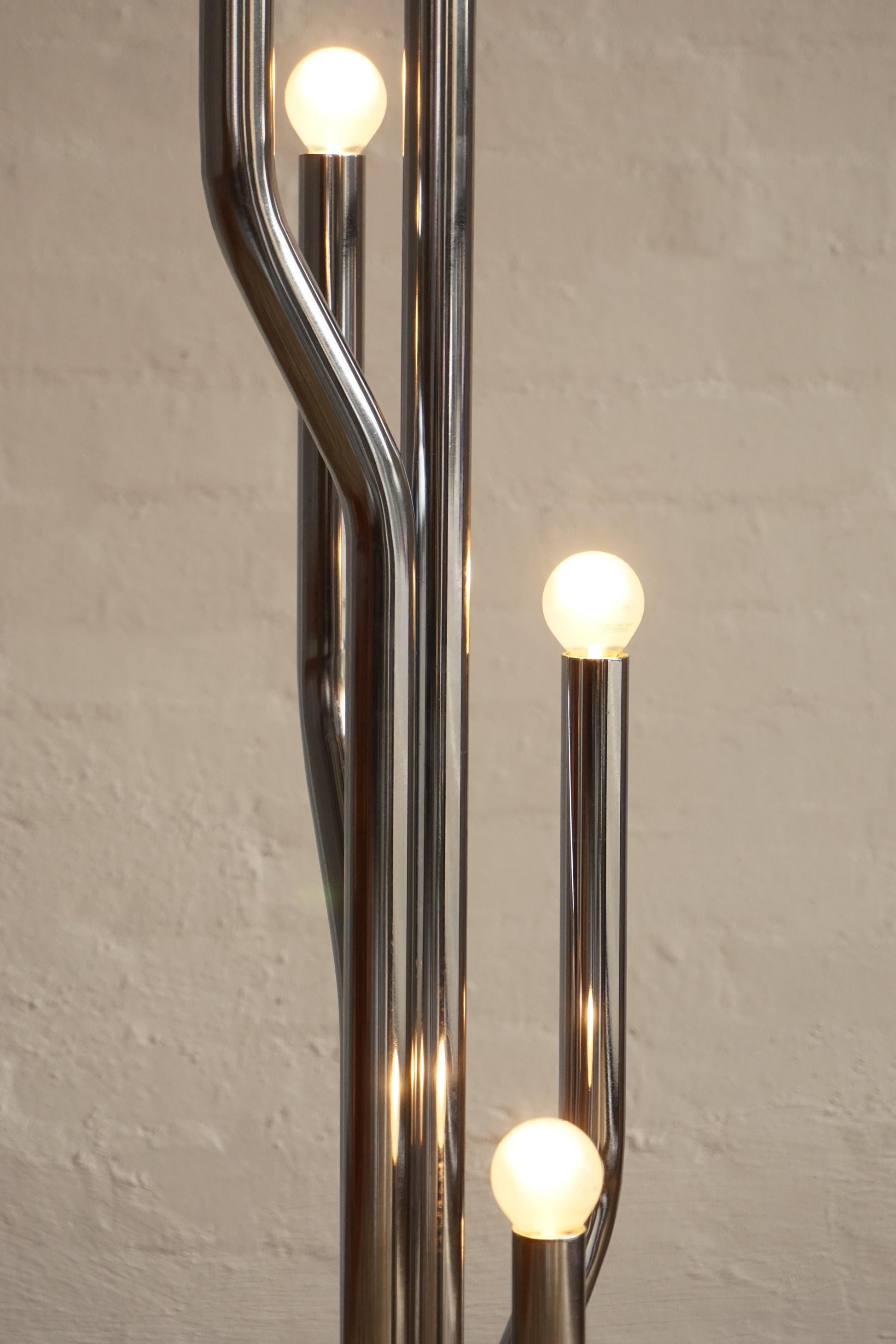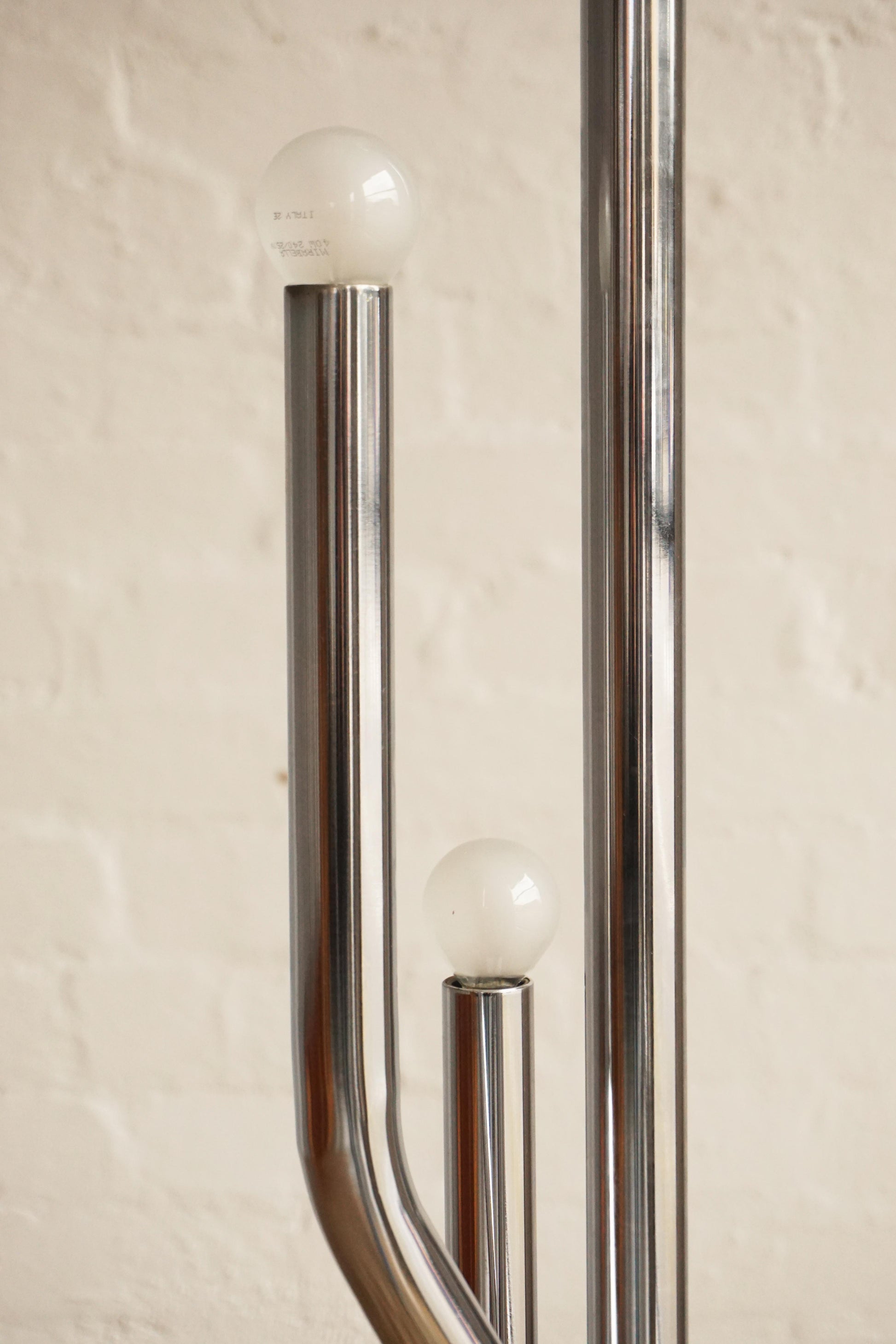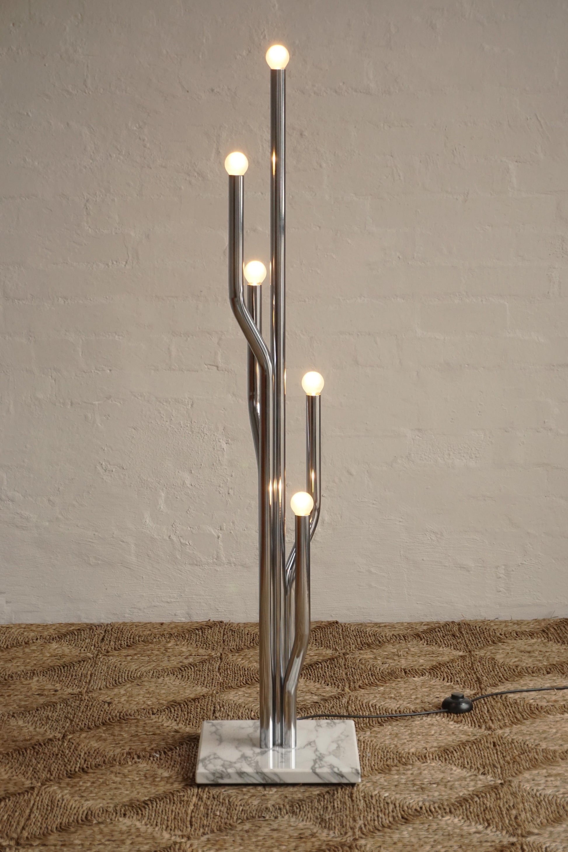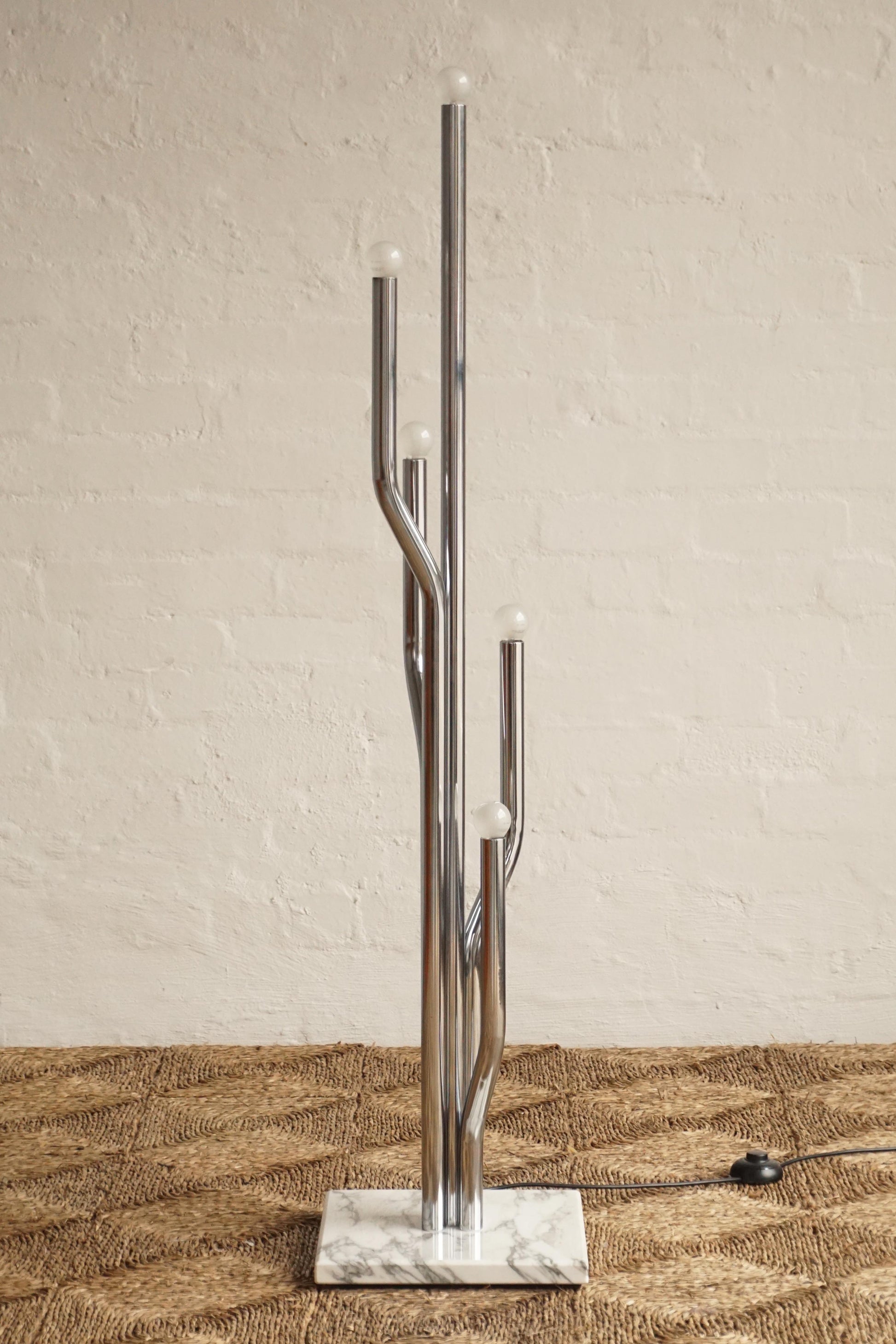 Chrome & marble floor lamp c.1970s Italy. Multiple chrome arms with frosted bulbs and a heavy marble base for stability. Unique sculptural piece. Fully rewired to Australian Standard with a new foot switch.