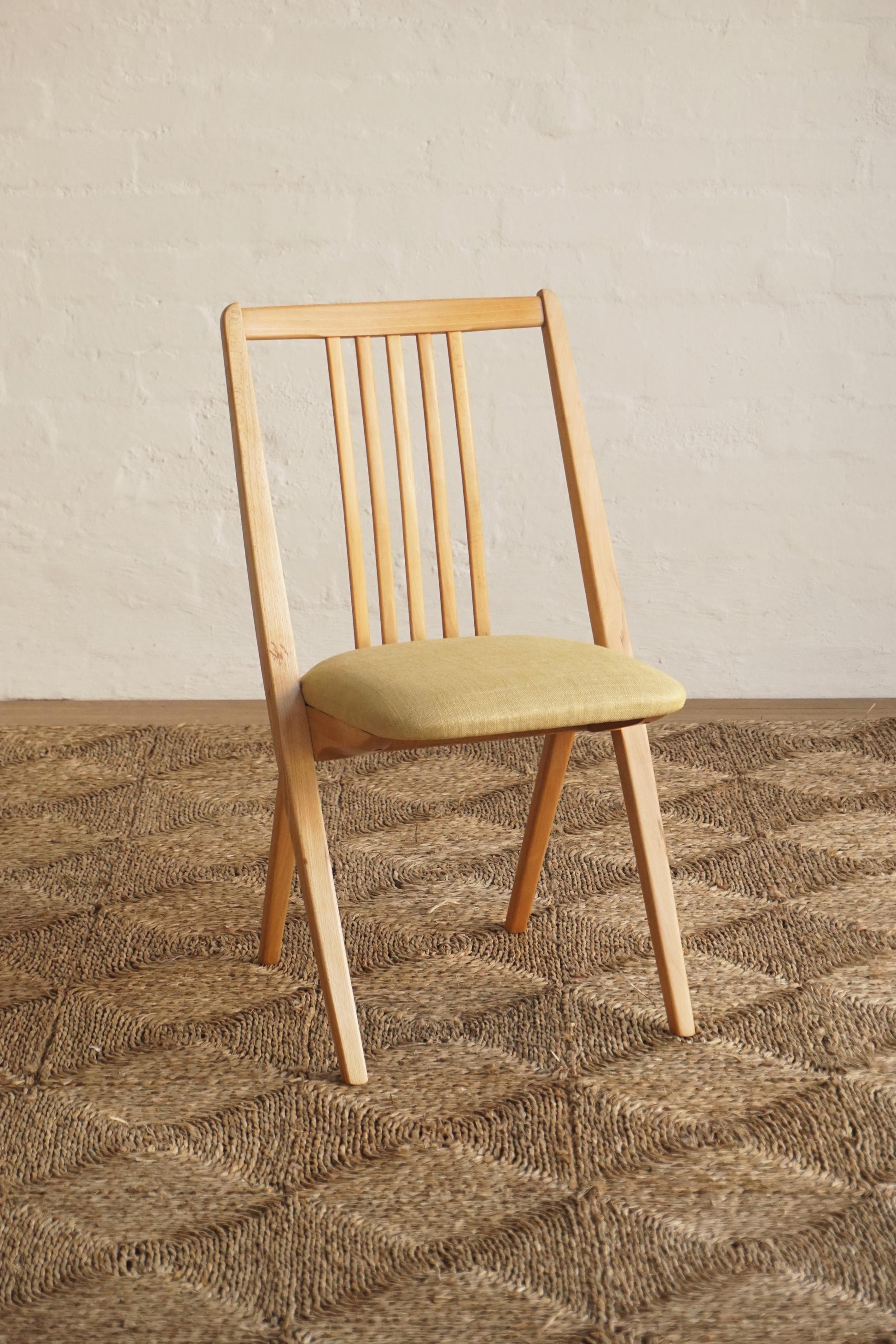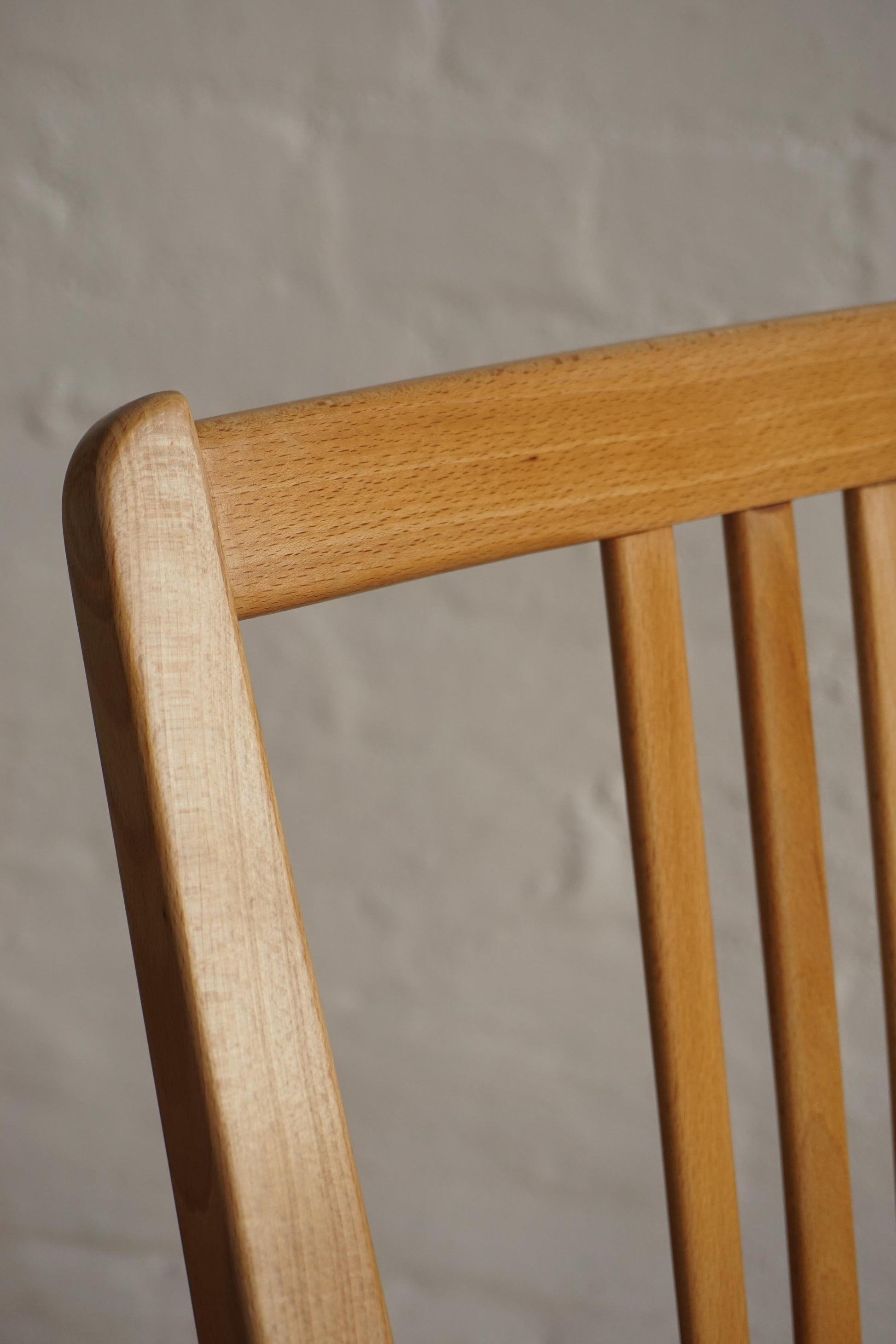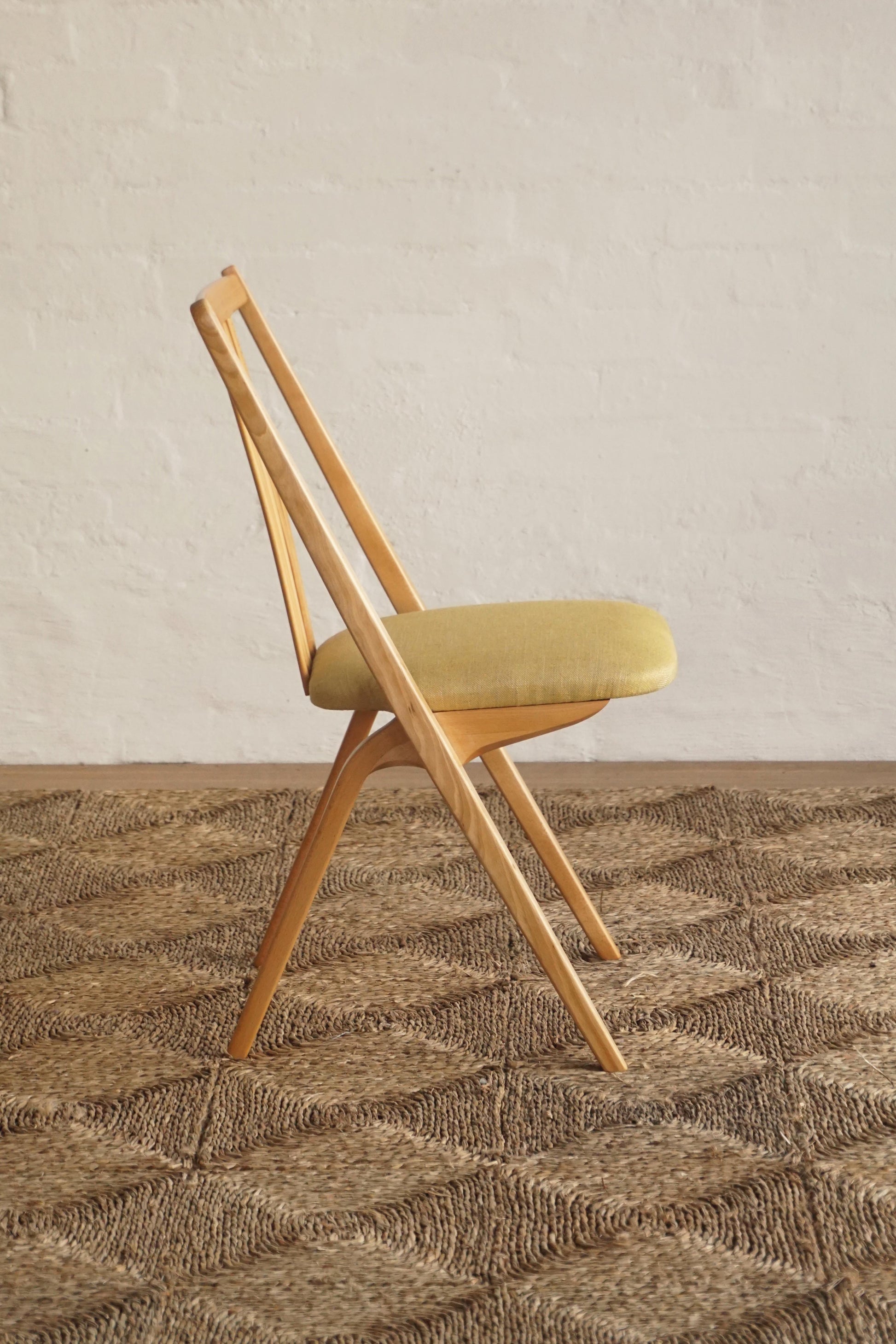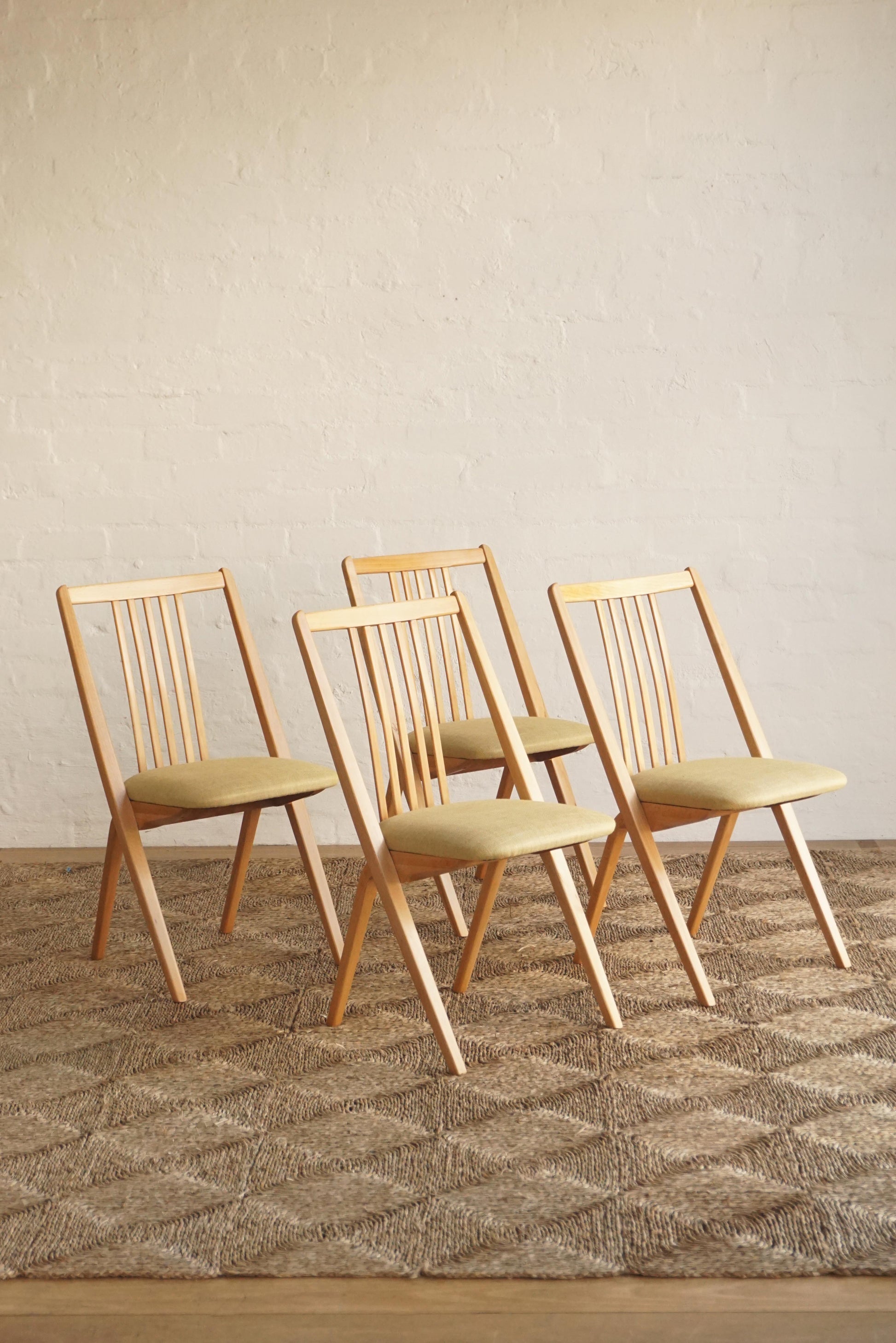 Set of four dining chairs by Svante Skogh c.1950s Denmark. Solid beech frame has been fully restored and finished with a low sheen hard shellac.