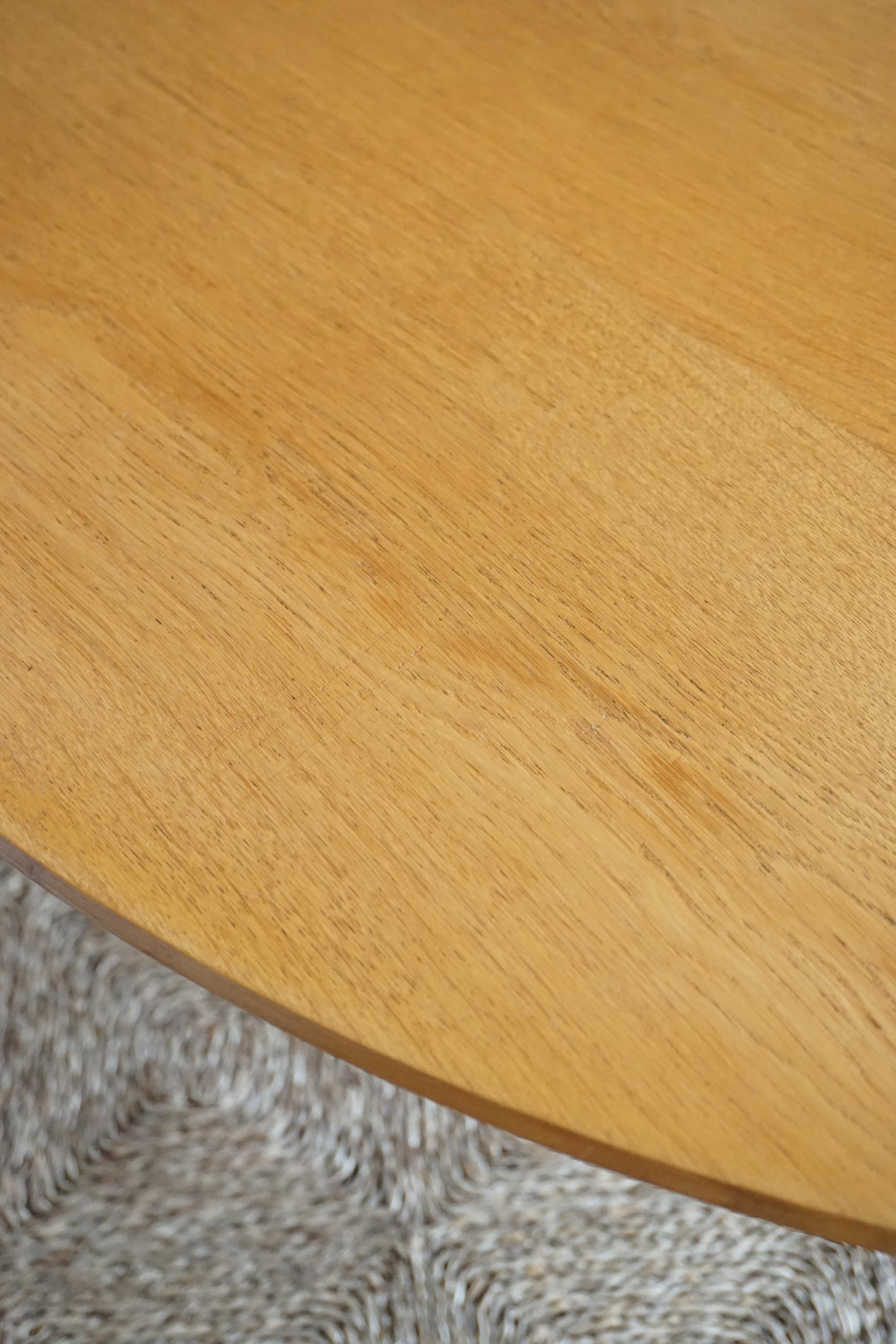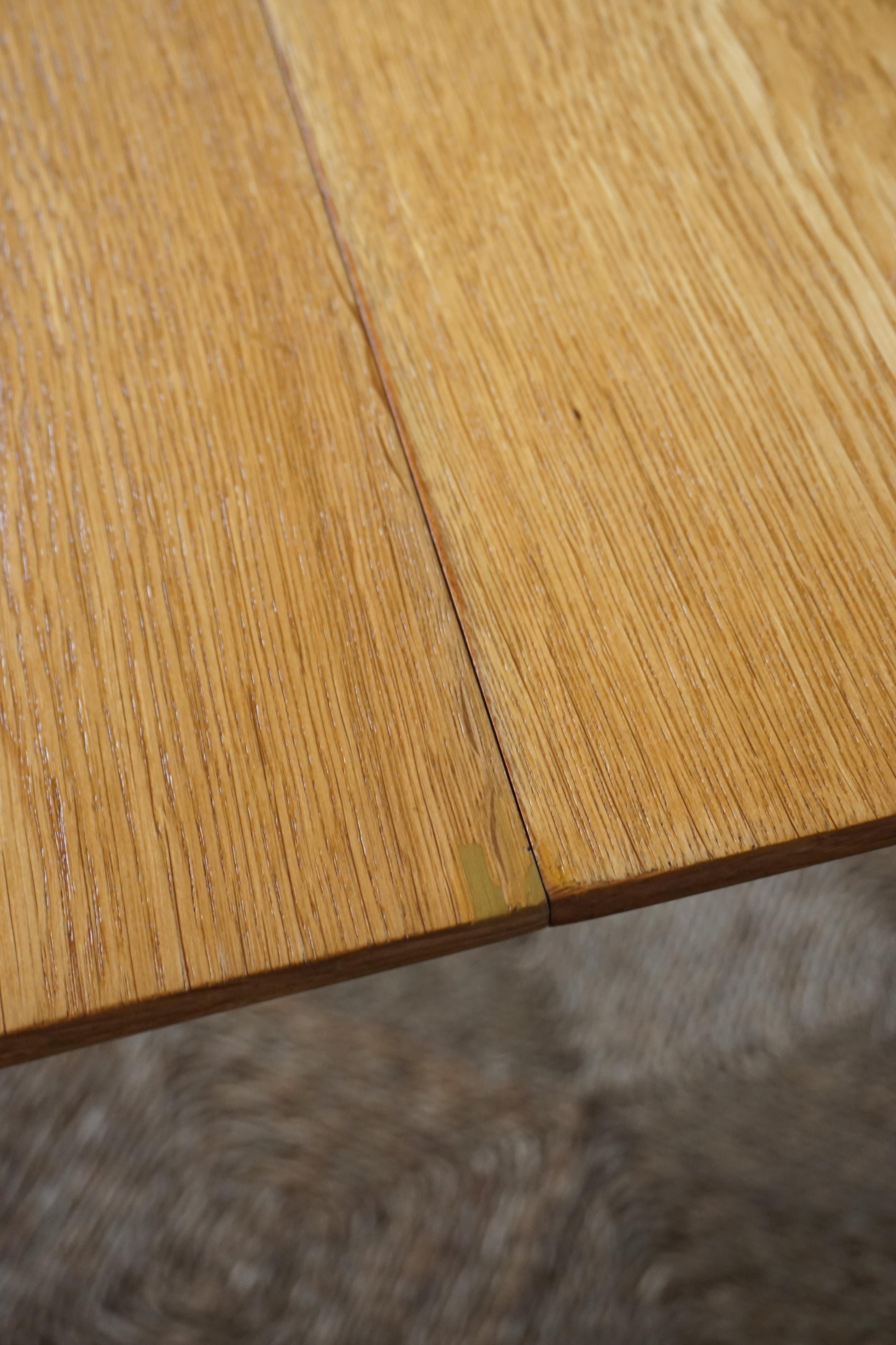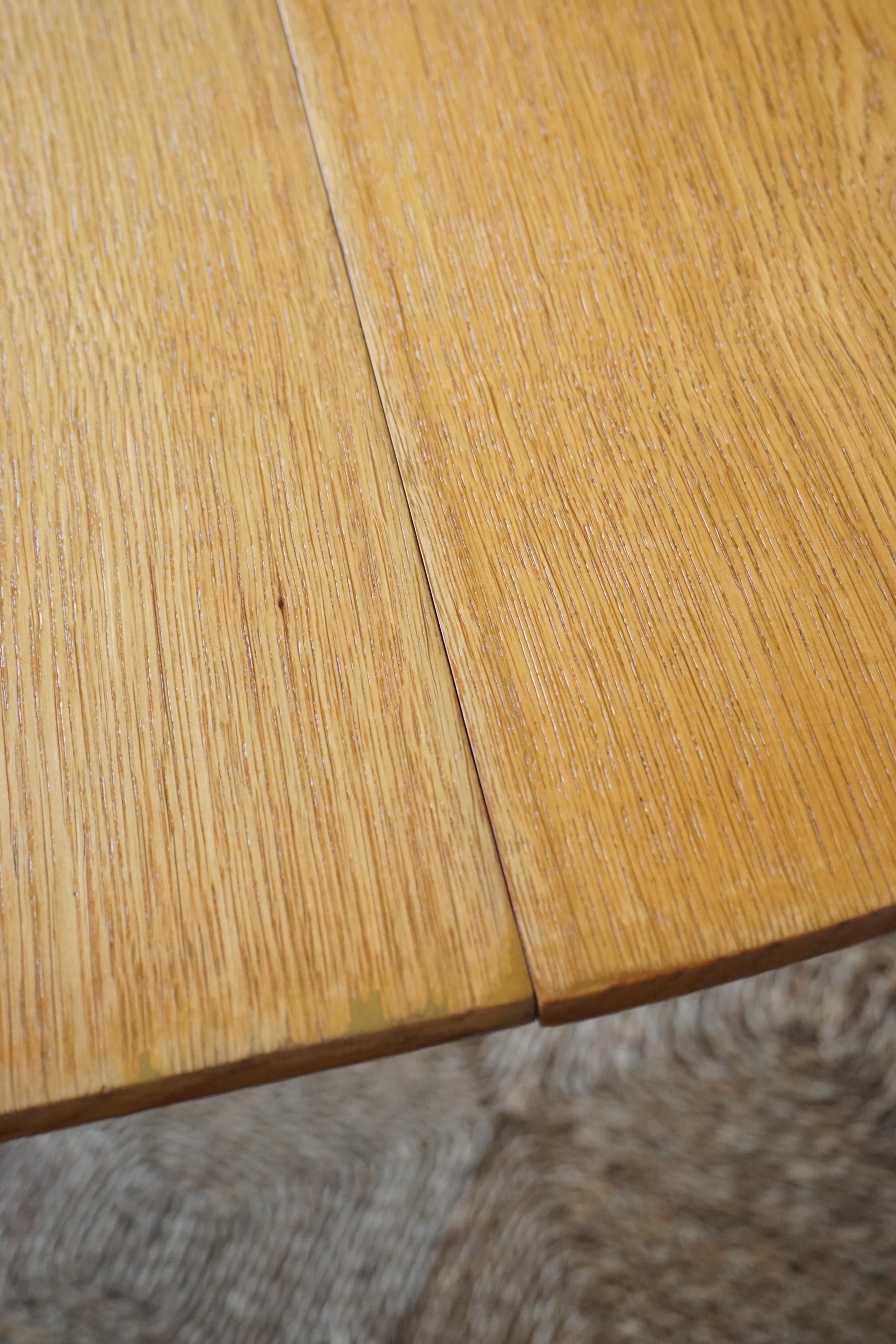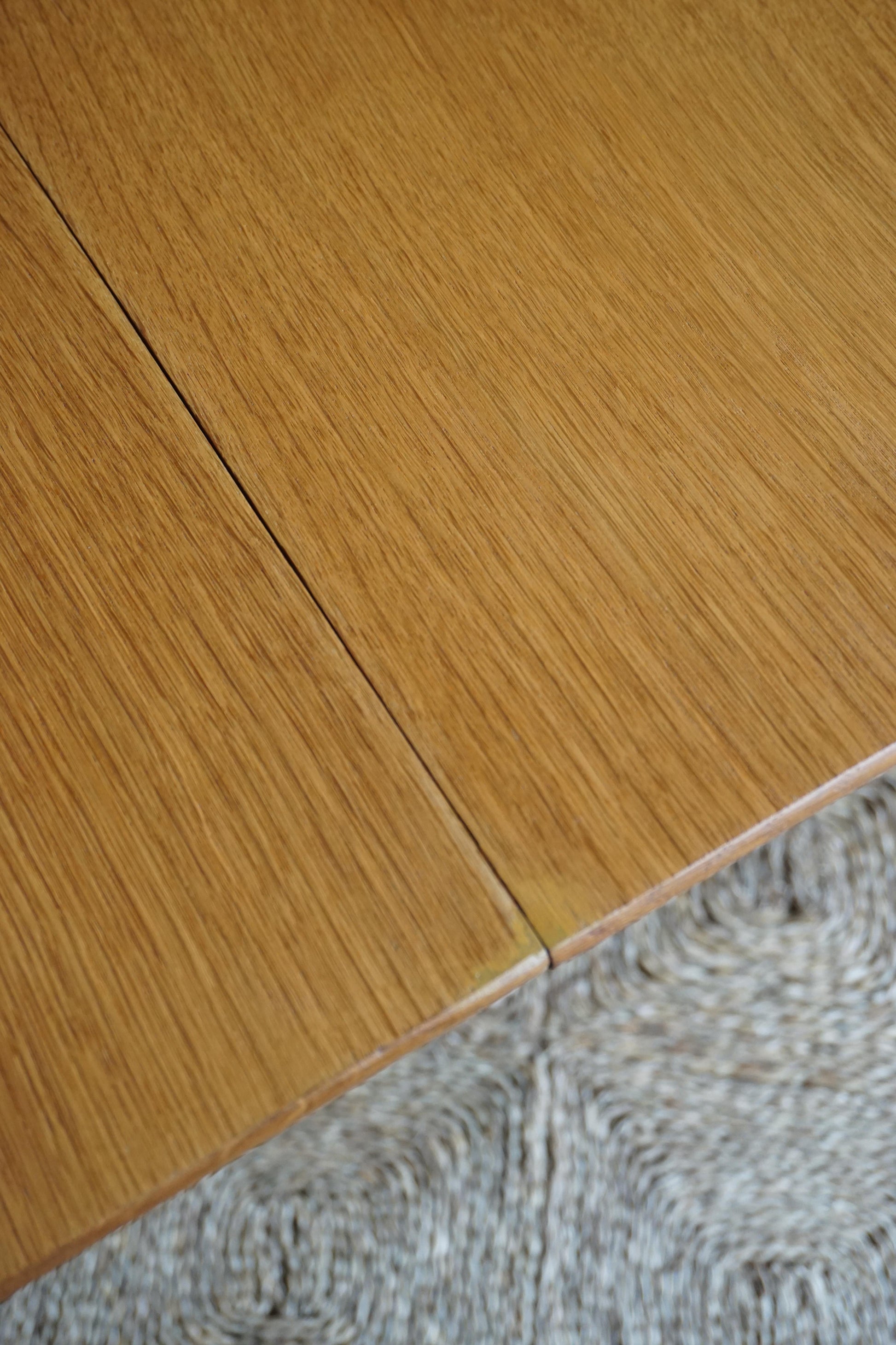 Large extendable oak dining table by Skovby c.1960s Denmark. Four extension leaves and a wooden drop down support leg extend the table from a 125cm round to a 3.25 metre long table. Comfortably seats 12 making it ideal for those who entertain large groups.