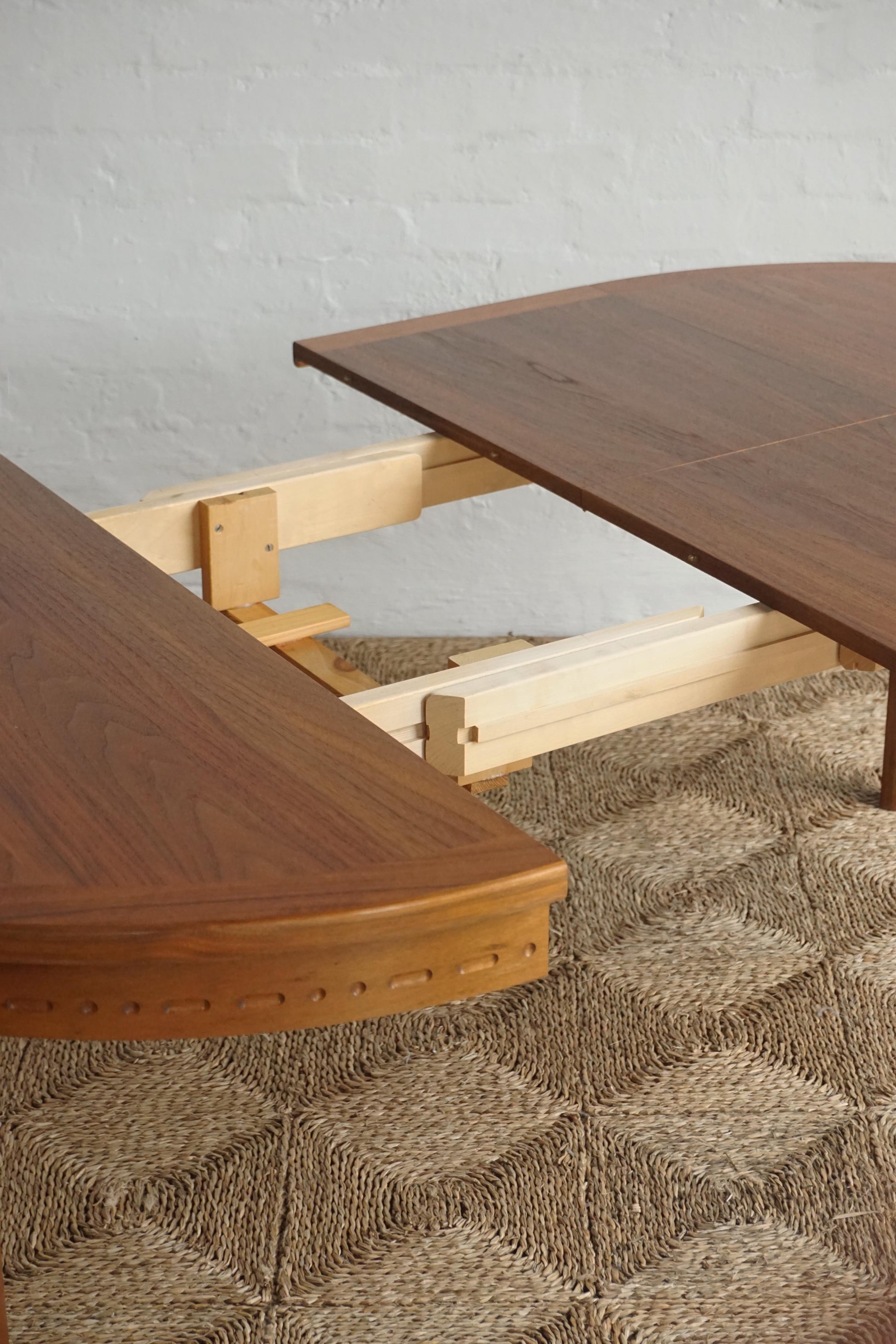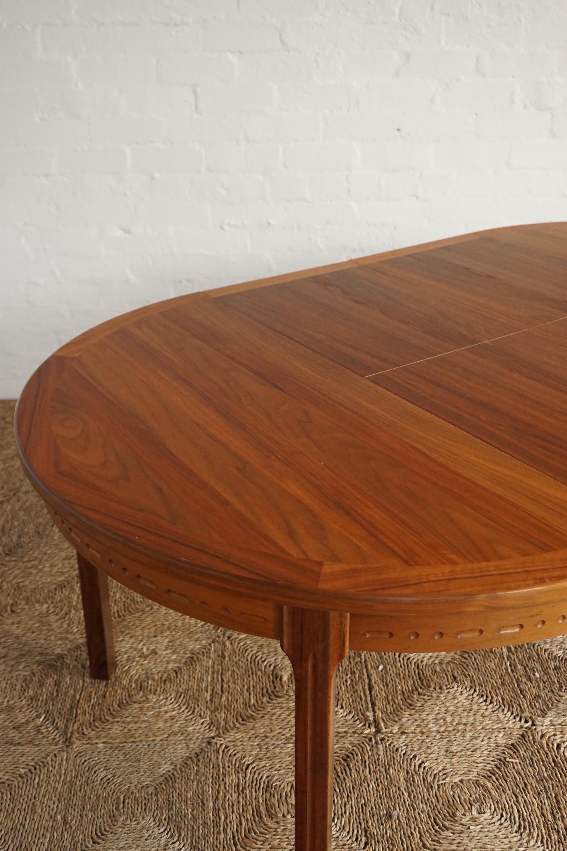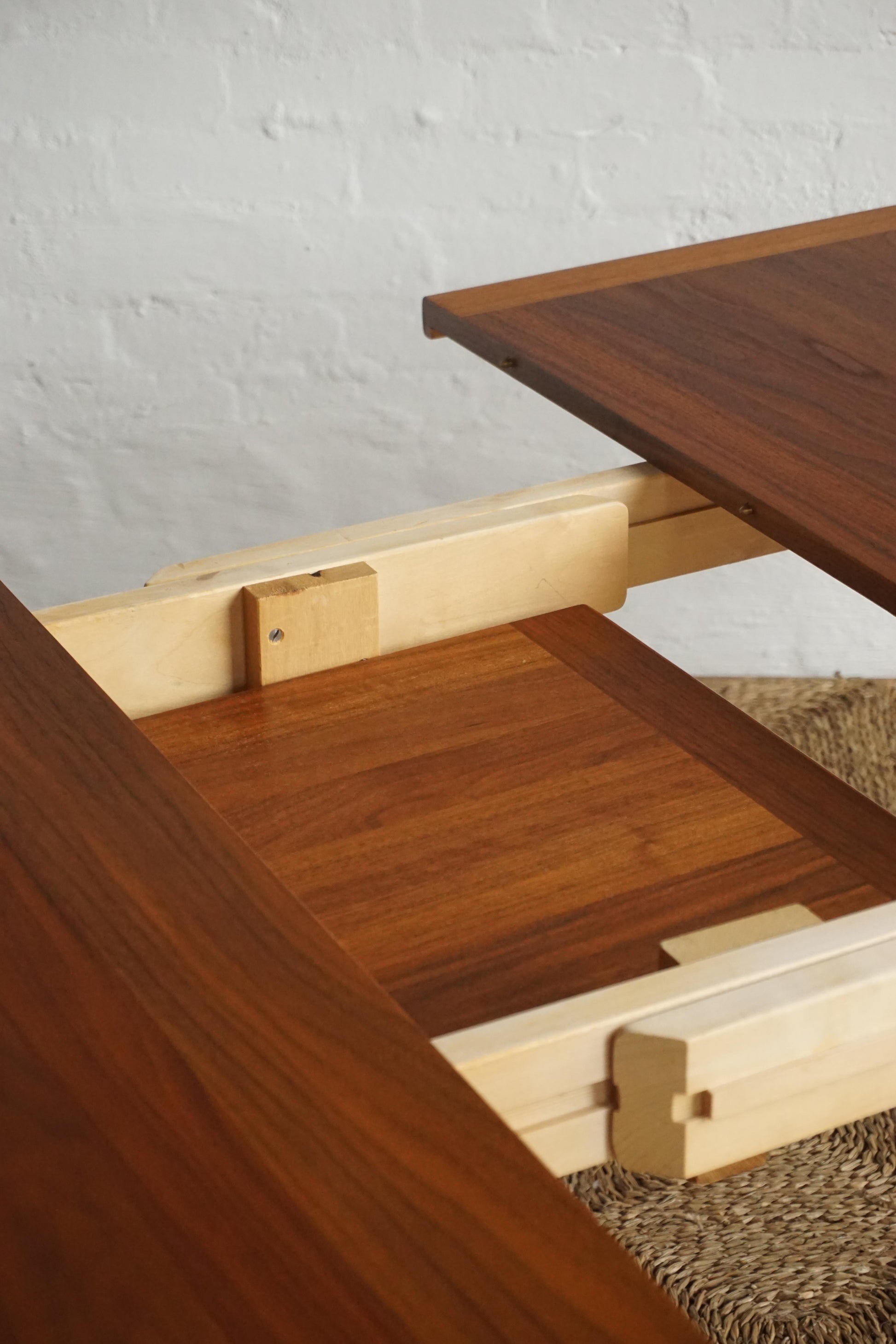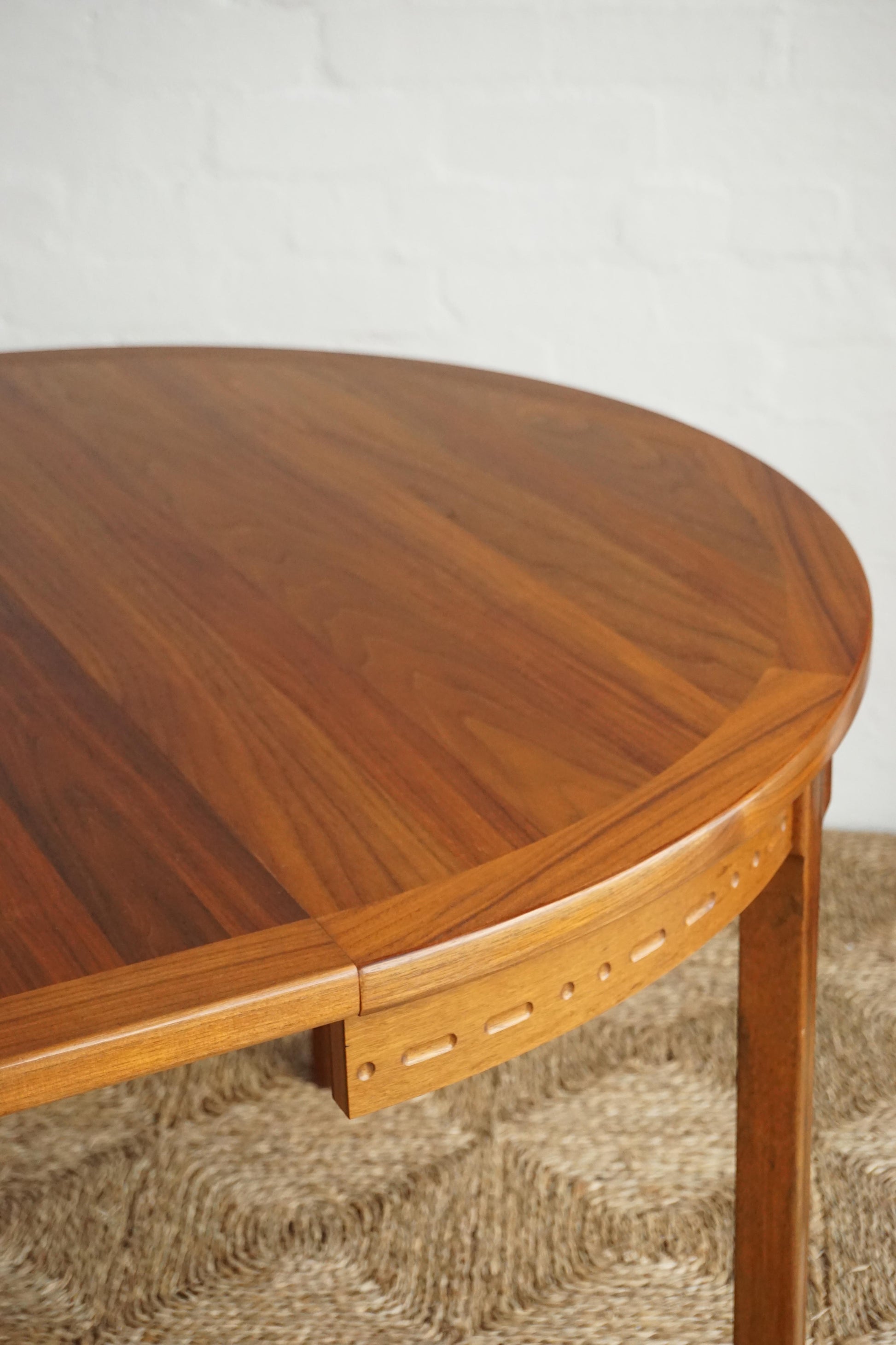 Extendable walnut dining table by Troeds c.1970s Sweden. Two folding extension extend the table to seat eight. When not in use the extension leaves are stored under the table, perfect for those short on storage. Fully restored, sanded and polished and finished in a hard shellac.