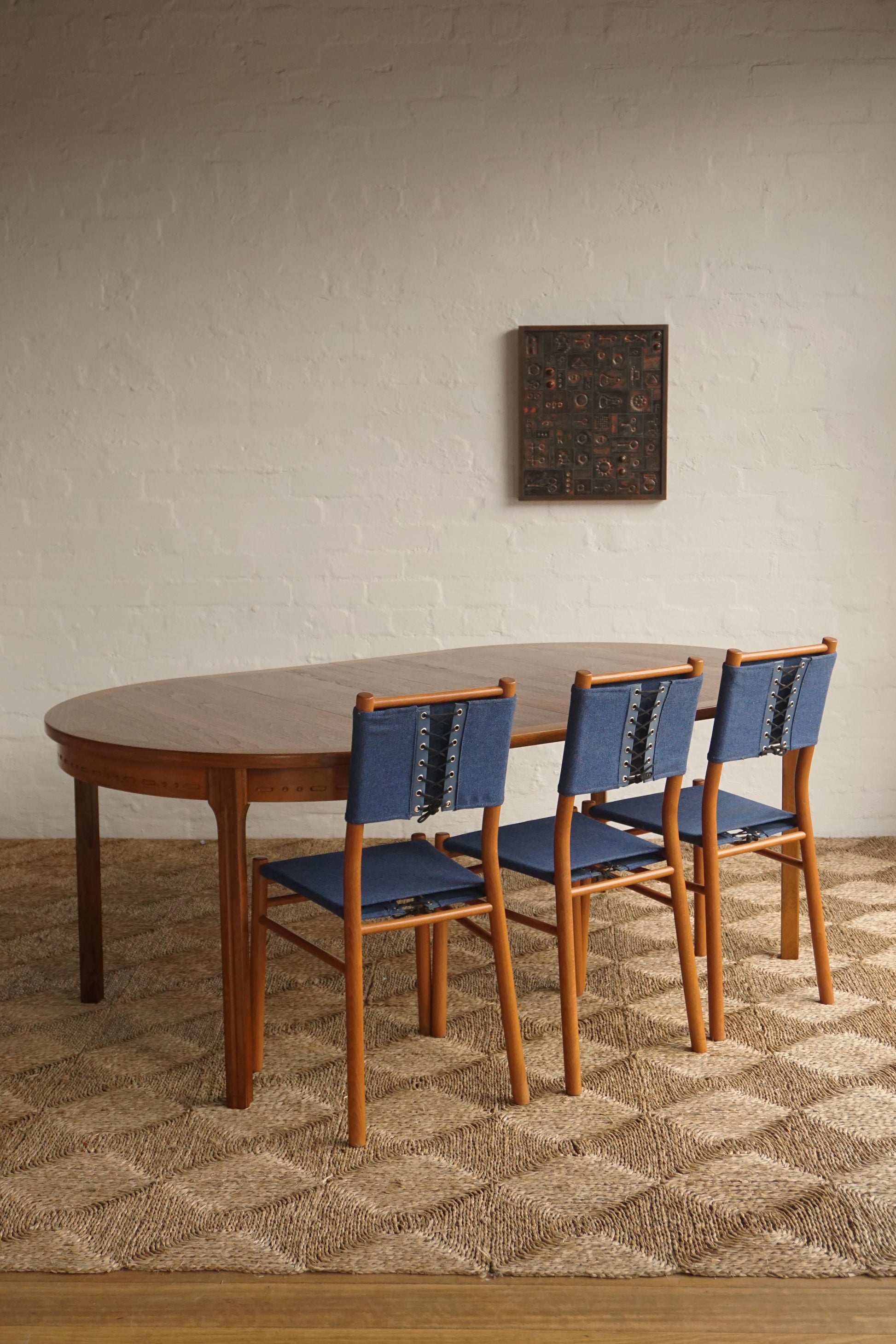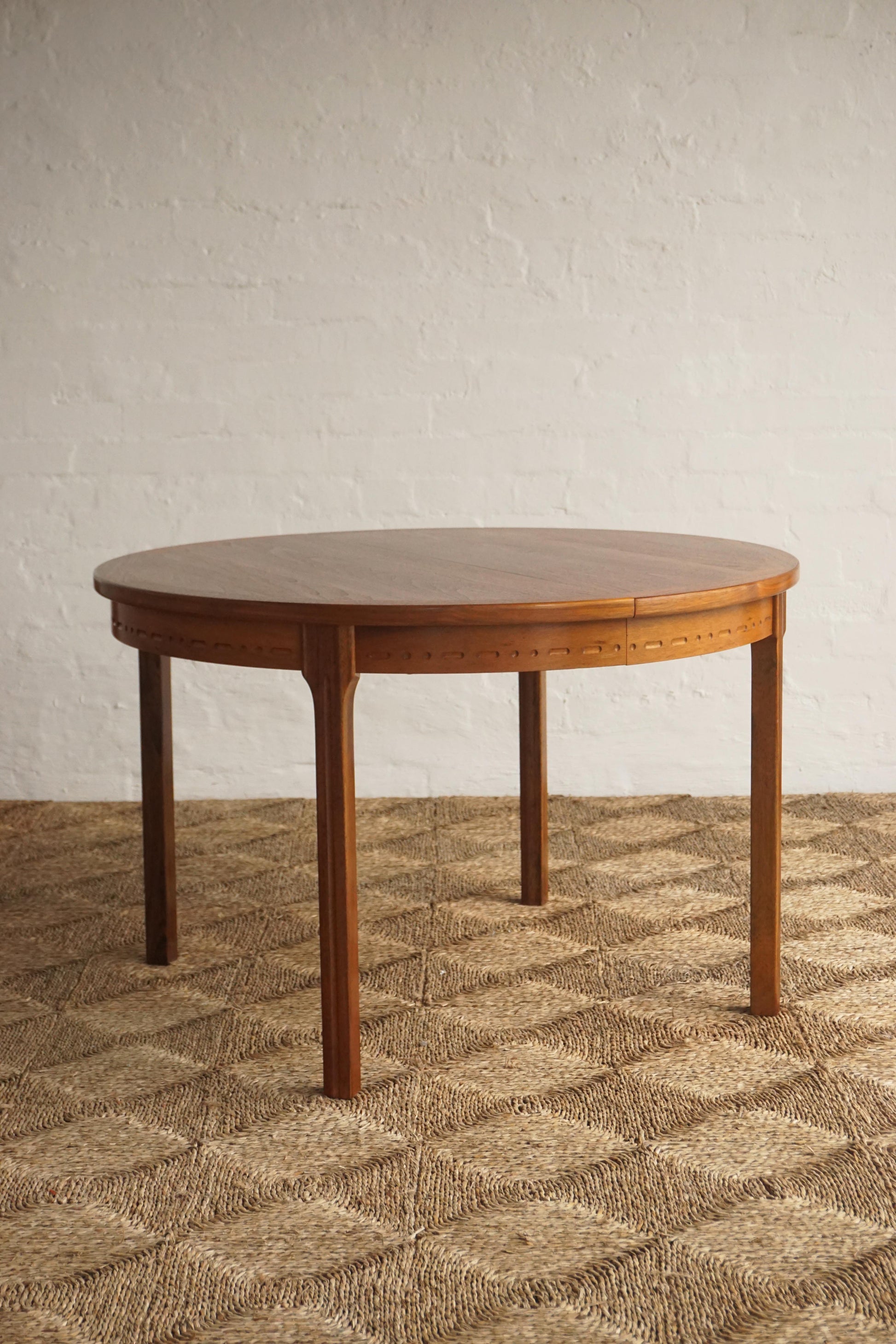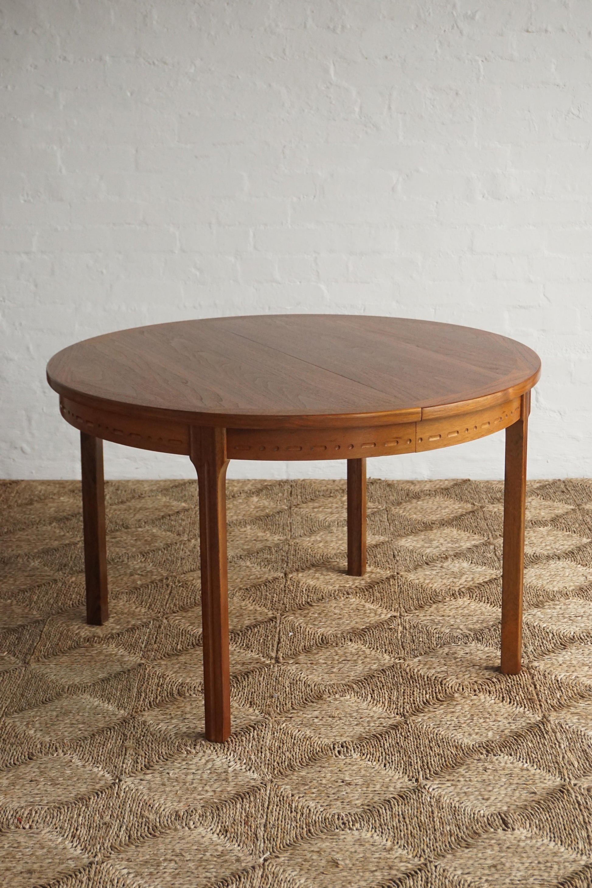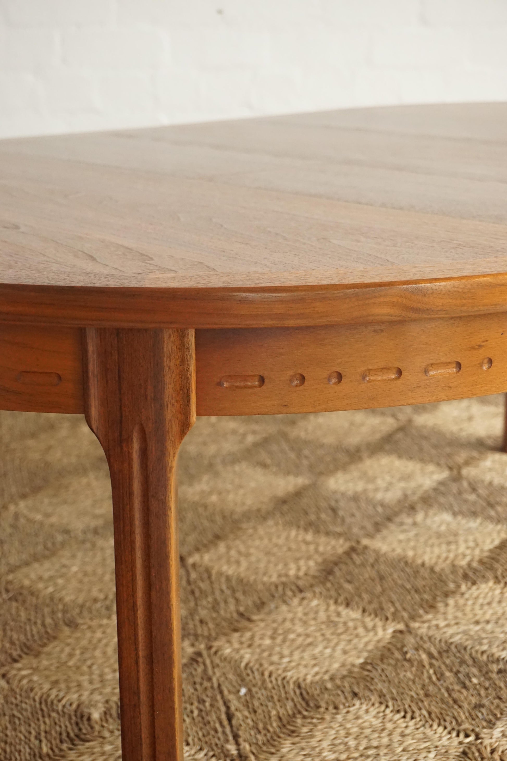 Extendable walnut dining table by Troeds c.1970s Sweden. Two folding extension extend the table to seat eight. When not in use the extension leaves are stored under the table, perfect for those short on storage. Fully restored, sanded and polished and finished in a hard shellac.