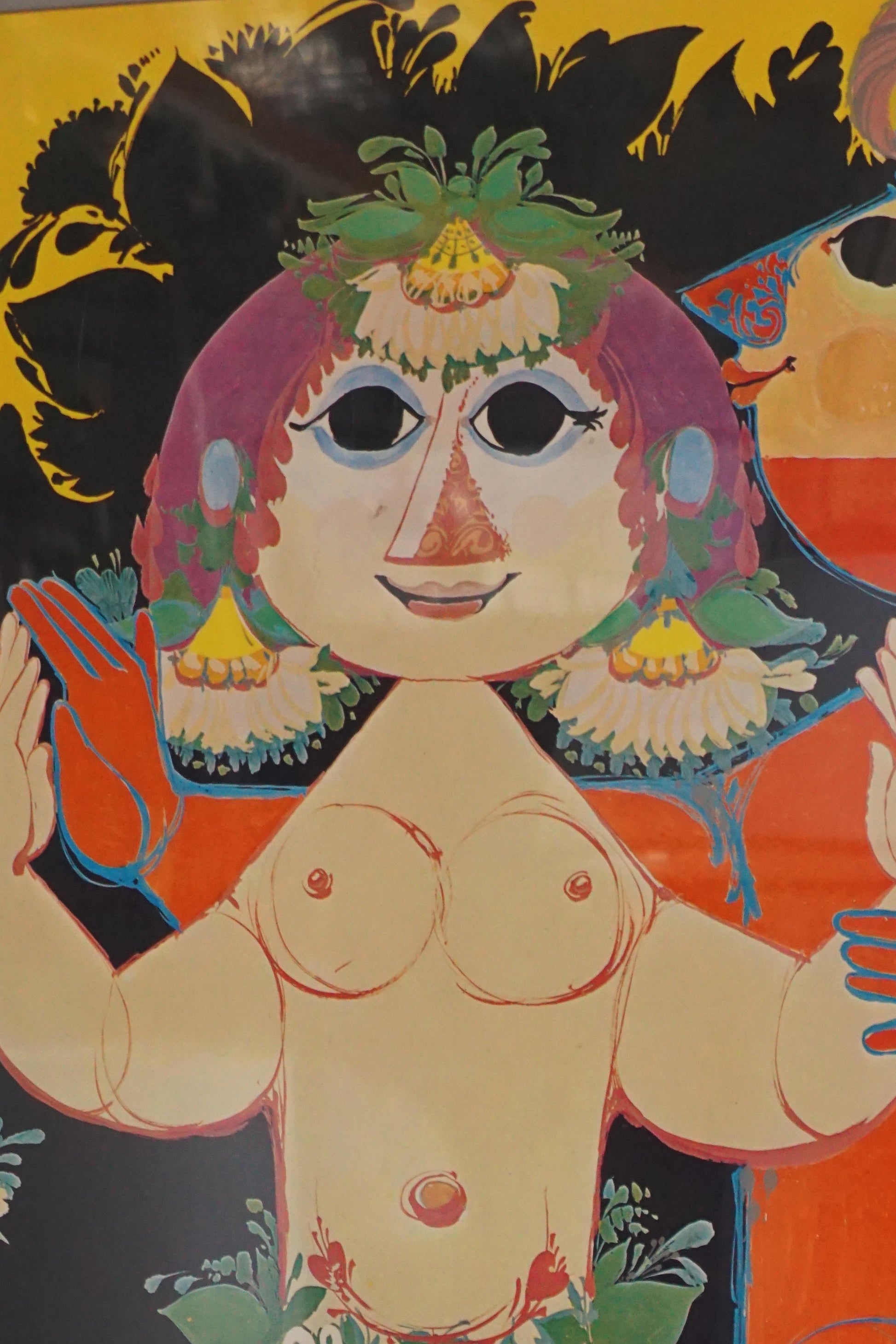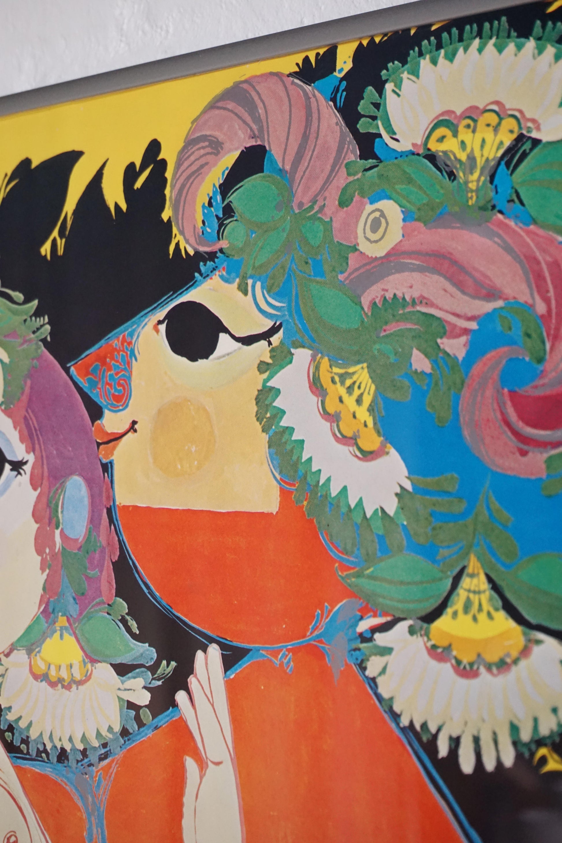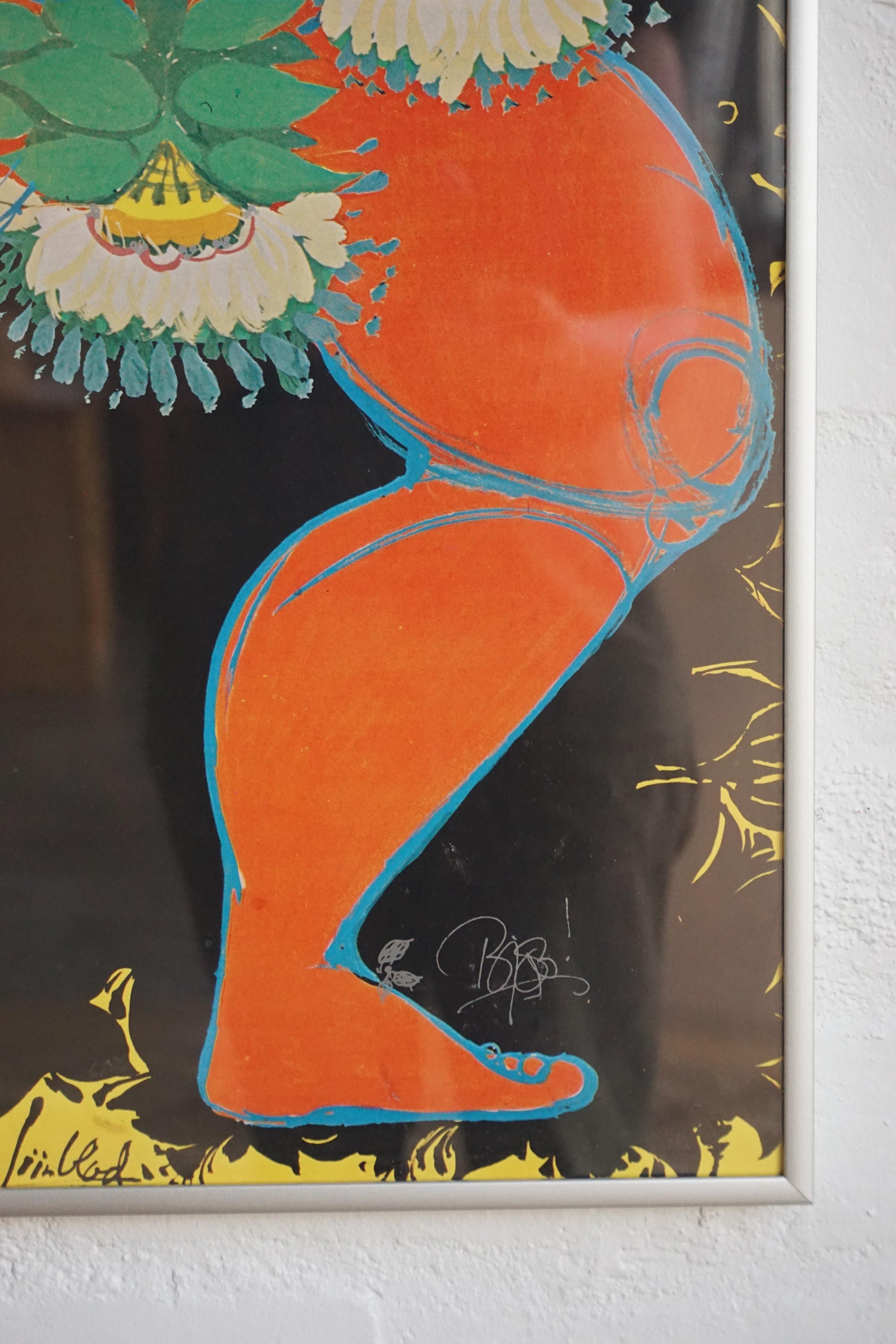 Vintage poster for the Cramer Ballet Sweden, designed by Danish artist Bjorn Winblad c.1979. Signed in print. Original metal frame with acrylic.