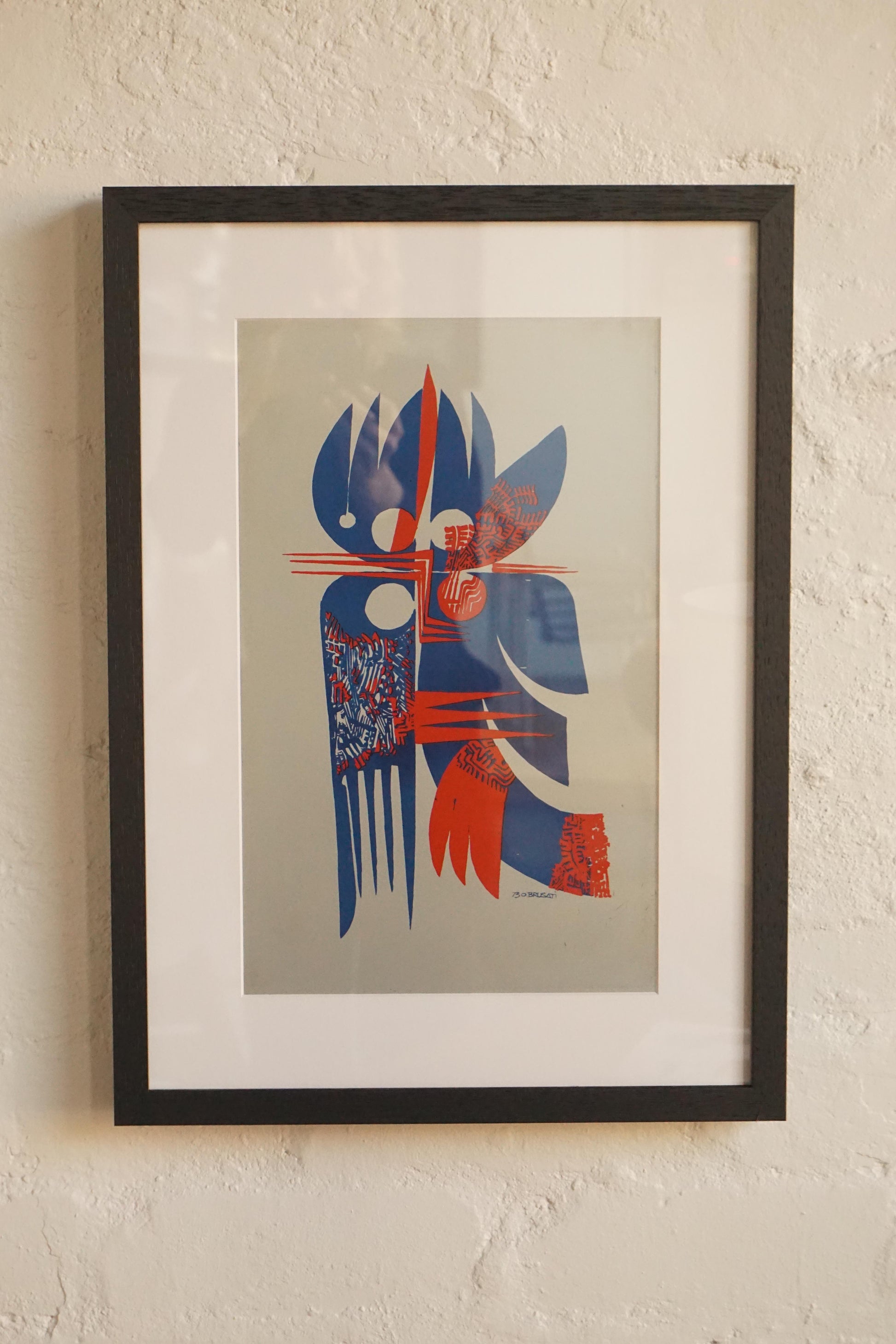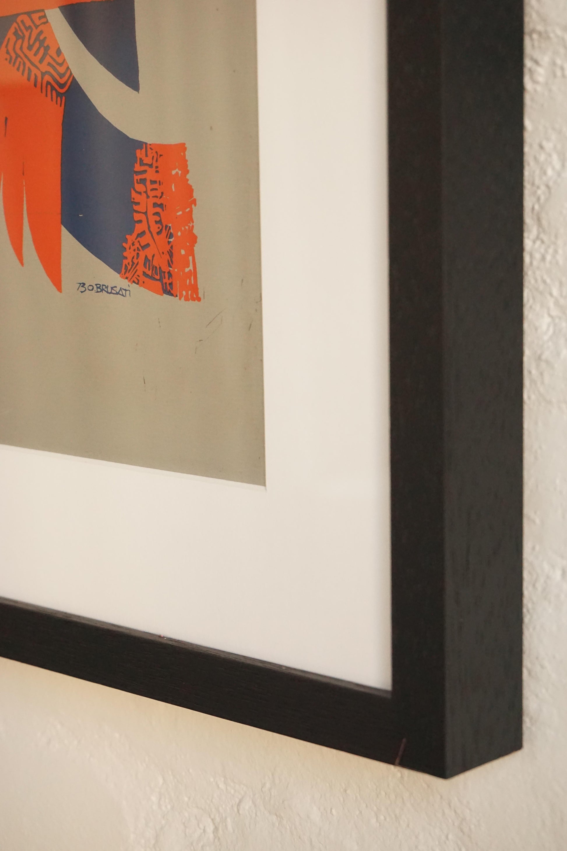 Print on aluminium sheet by Osvaldo Brusati c.1970s Italy. New timber frame.