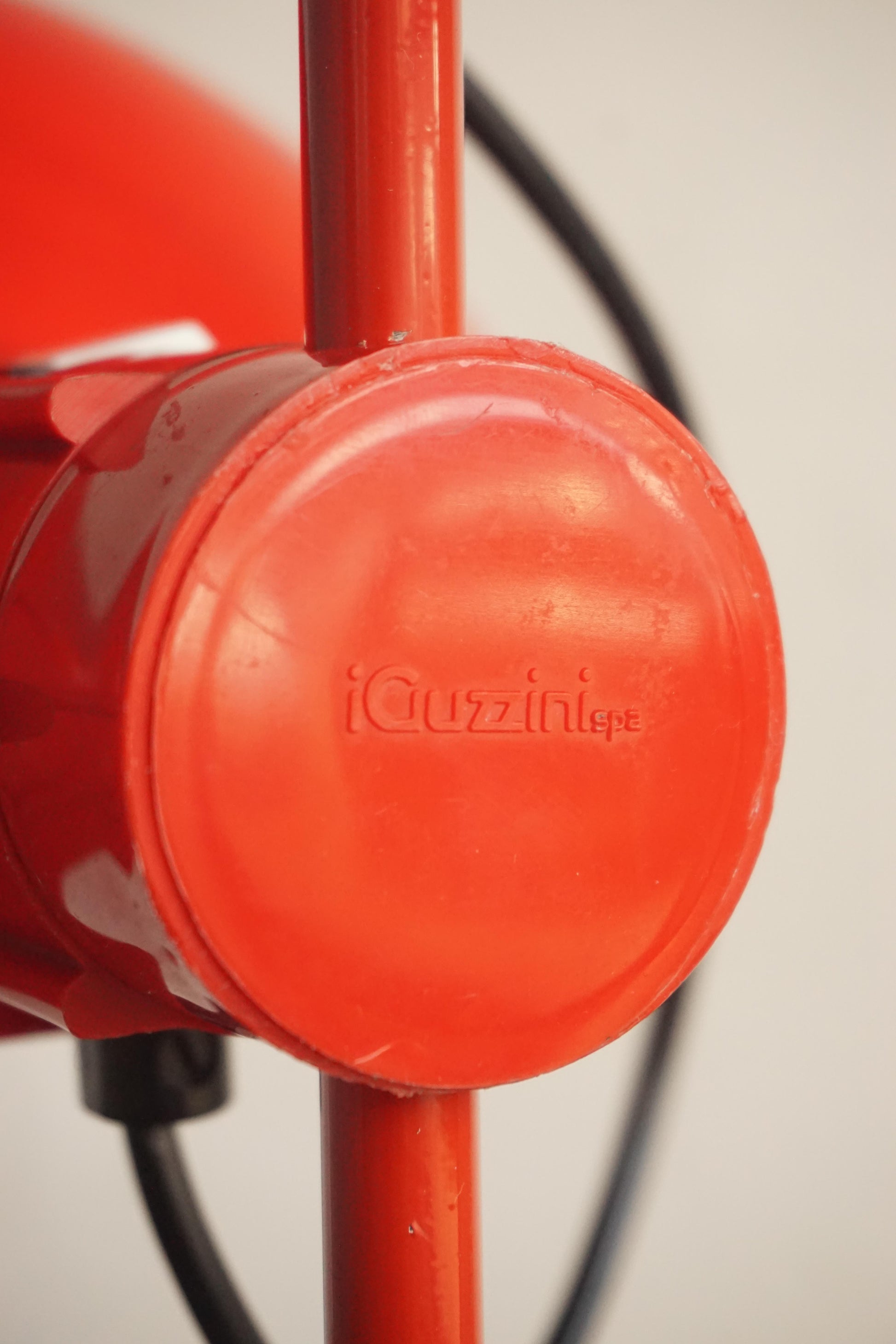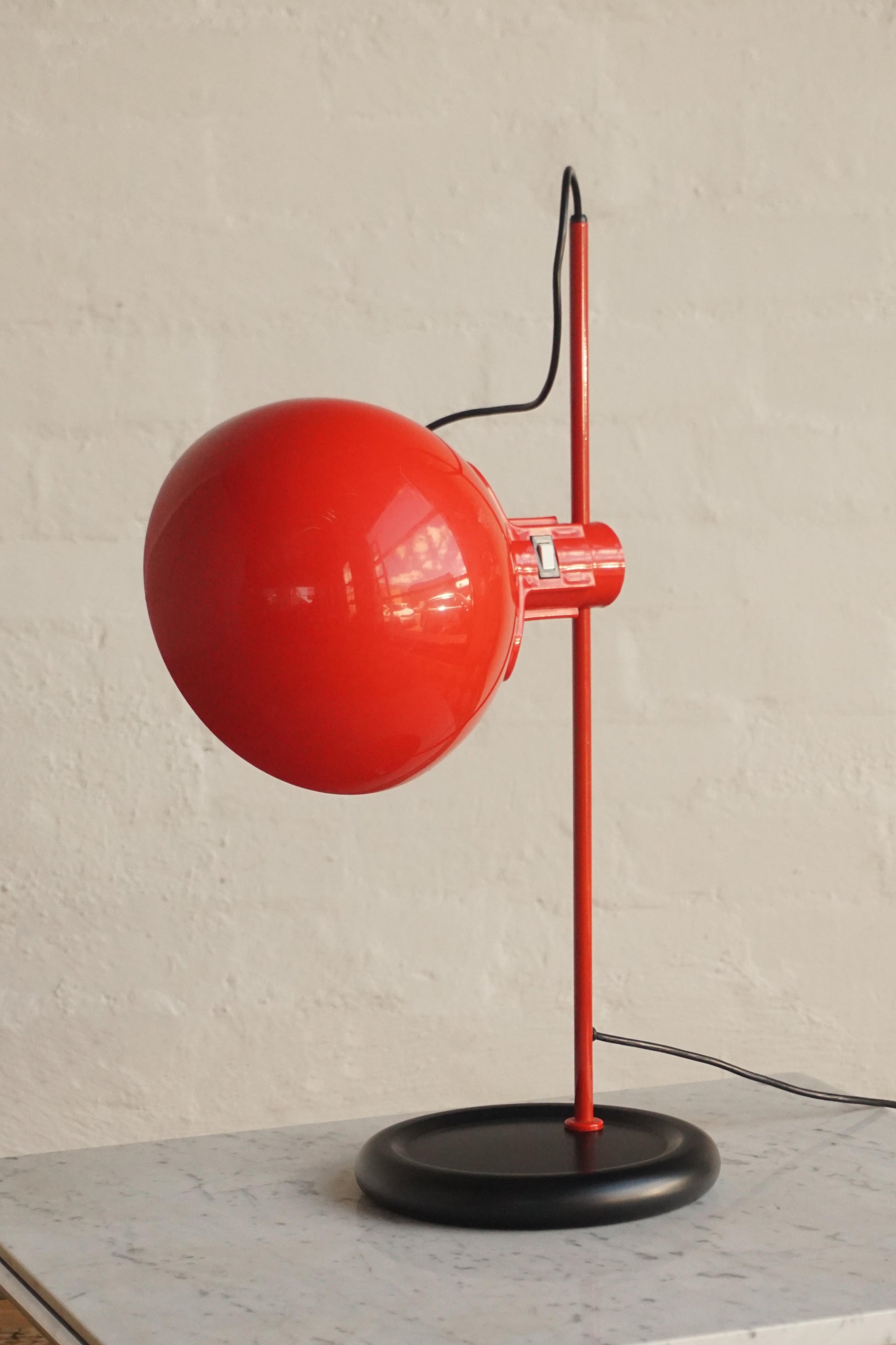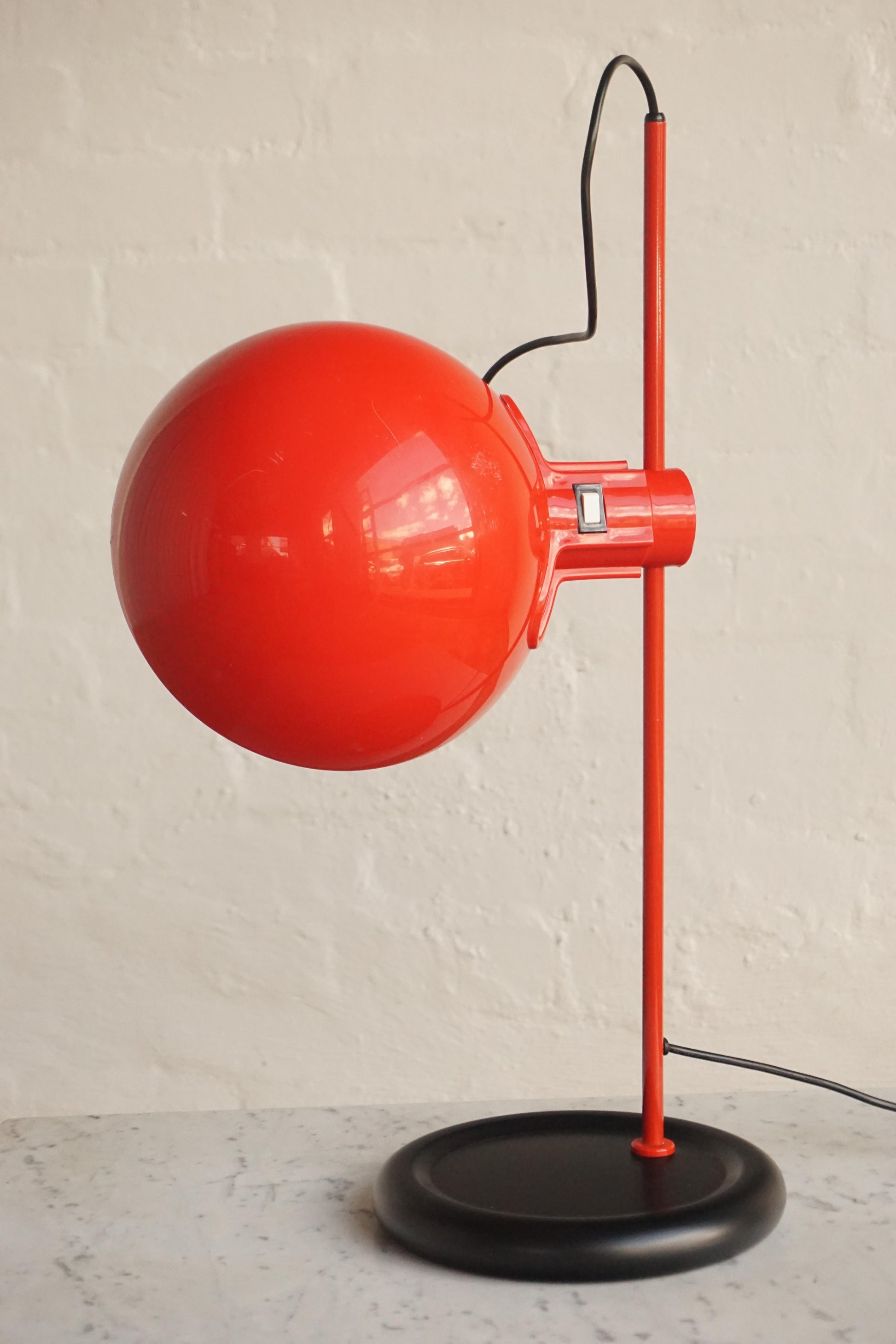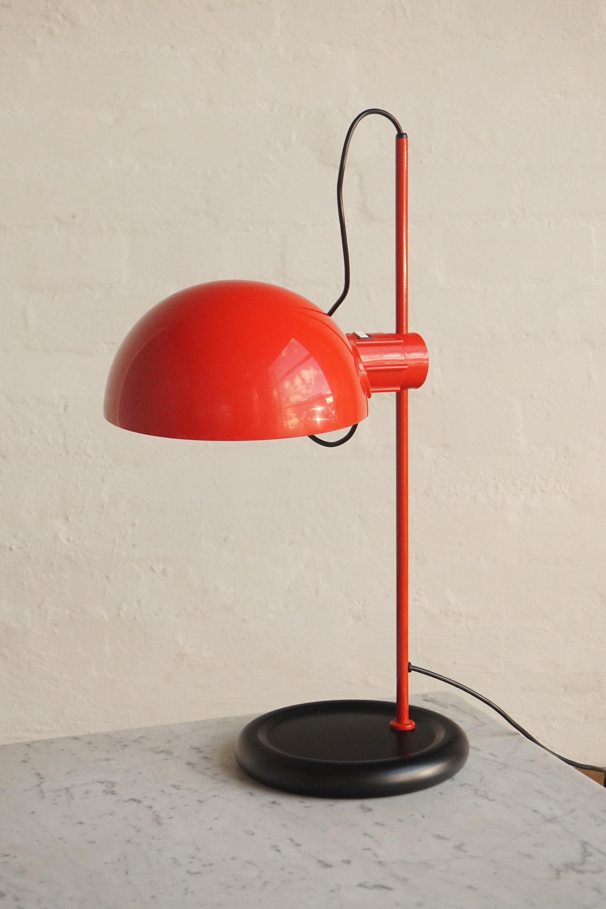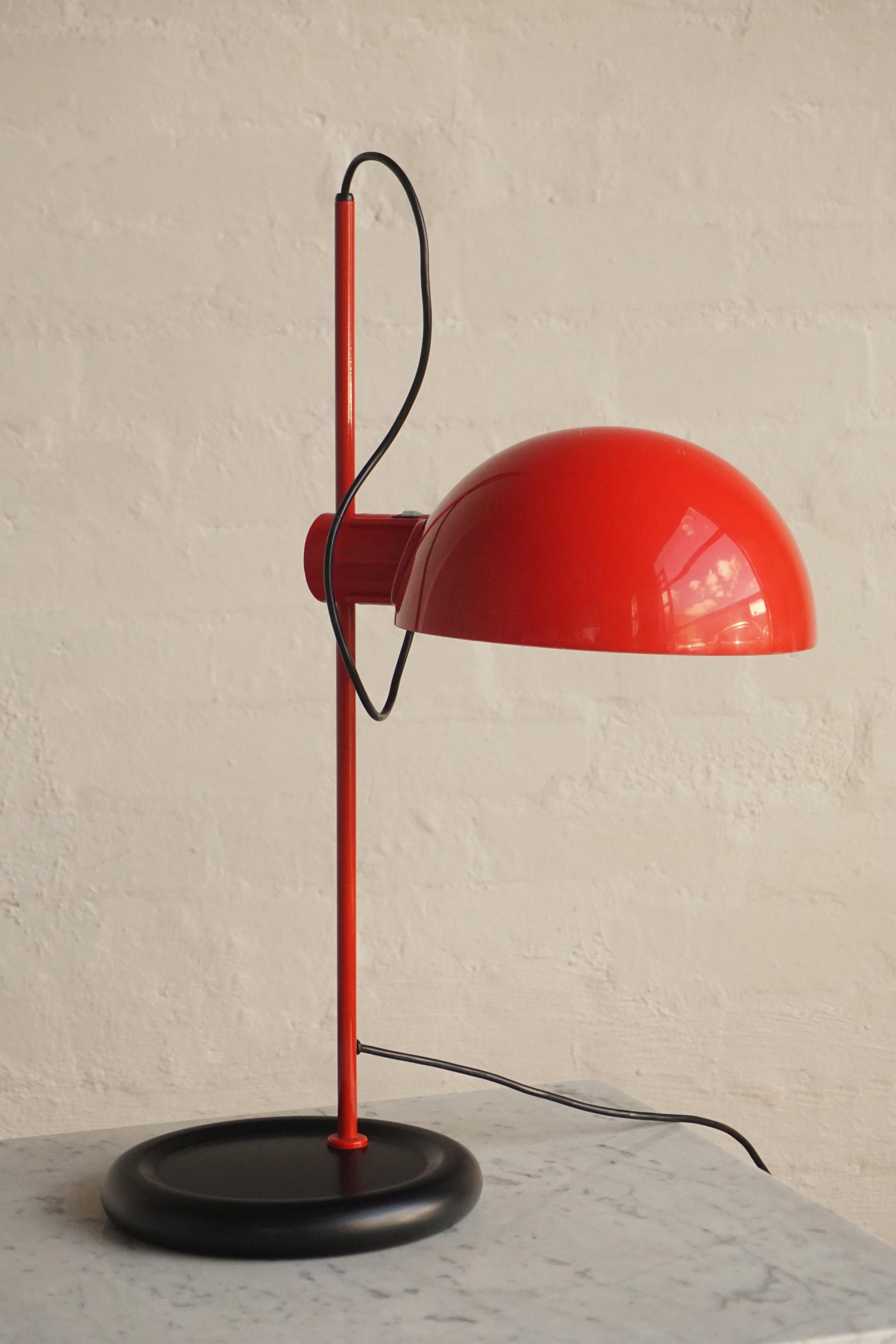 Model 4031 desk lamp designed by Guzzini c.1970s Italy. Directional acrylic shade with white interior and on/off switch. Steel stem with heavy base for stability. Makers mark. Fully rewired to Australian Standard.
