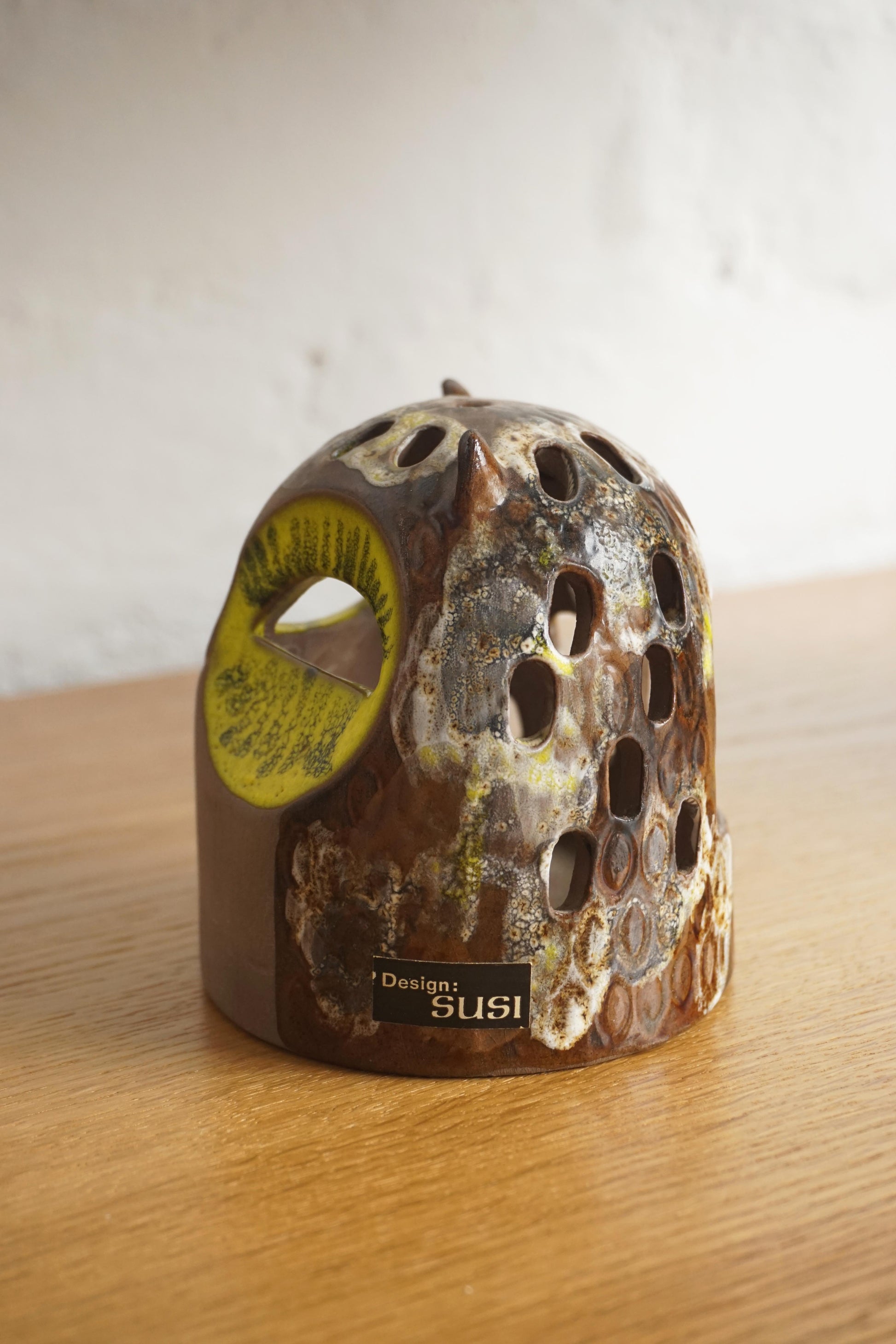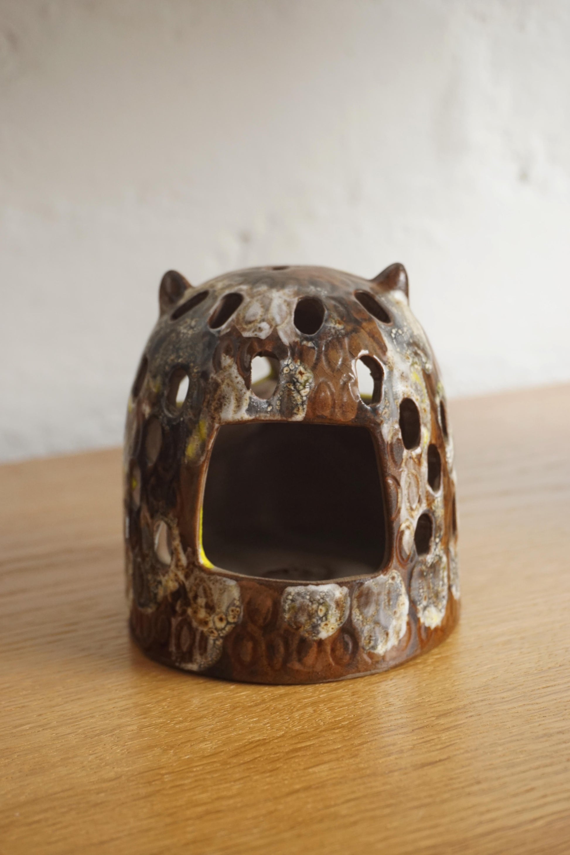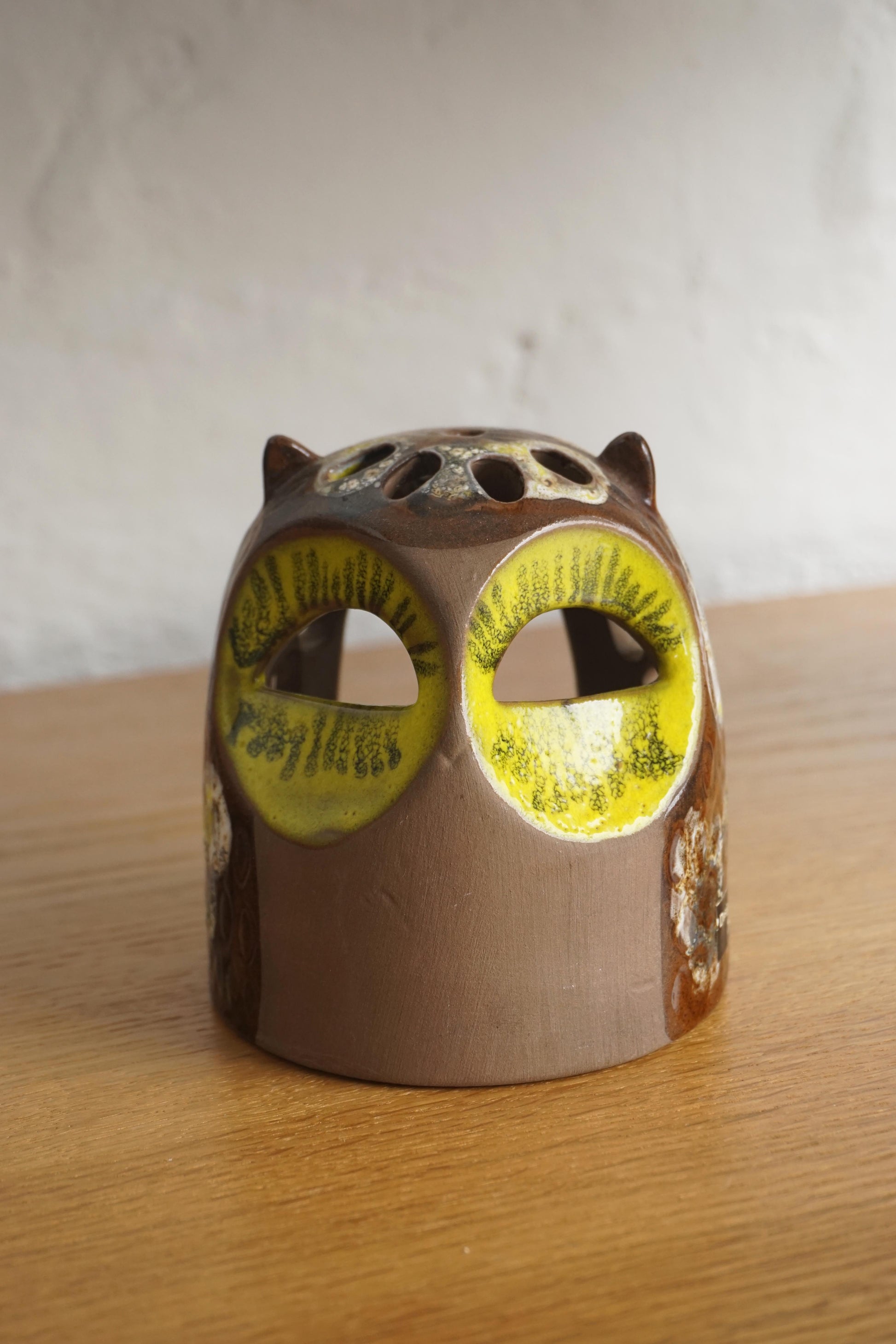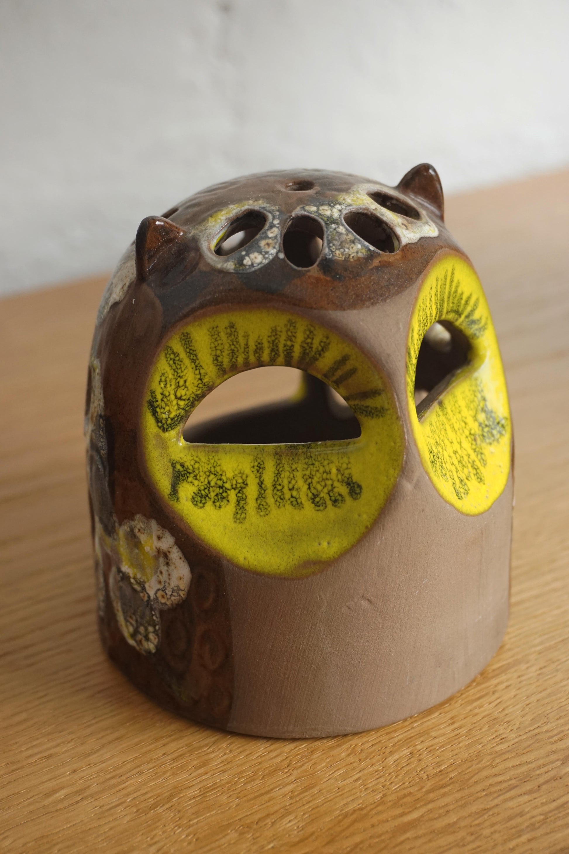 Ceramic Owl votive holder by Halsingborg c.1970s Sweden. Makers mark on the base.