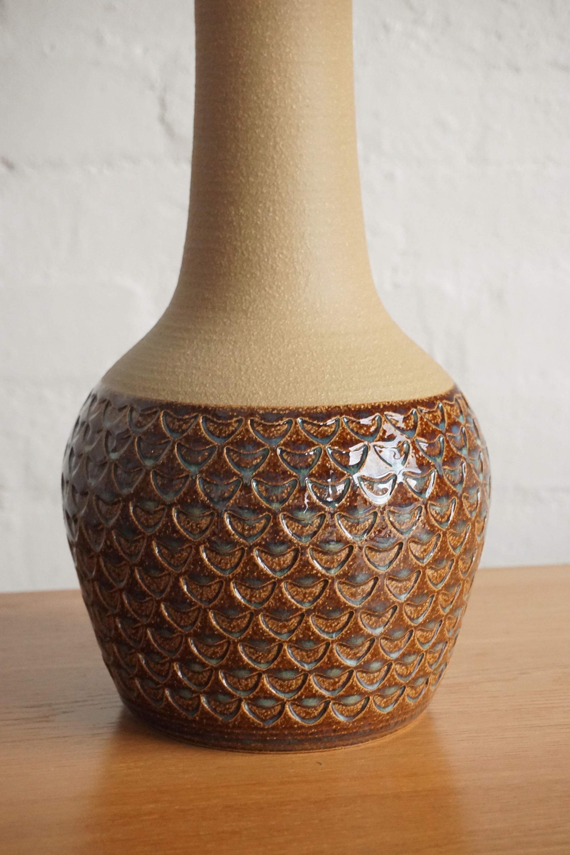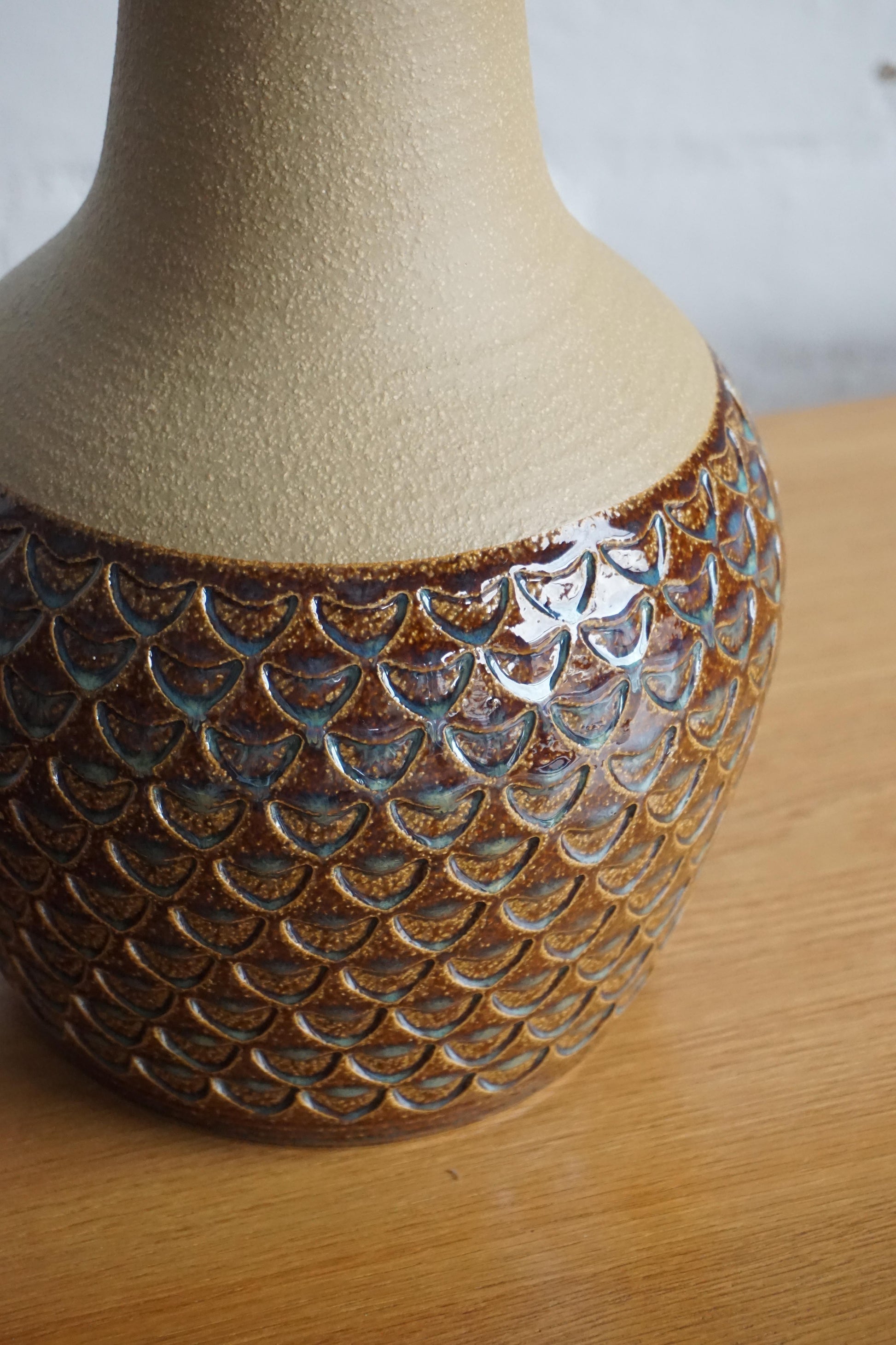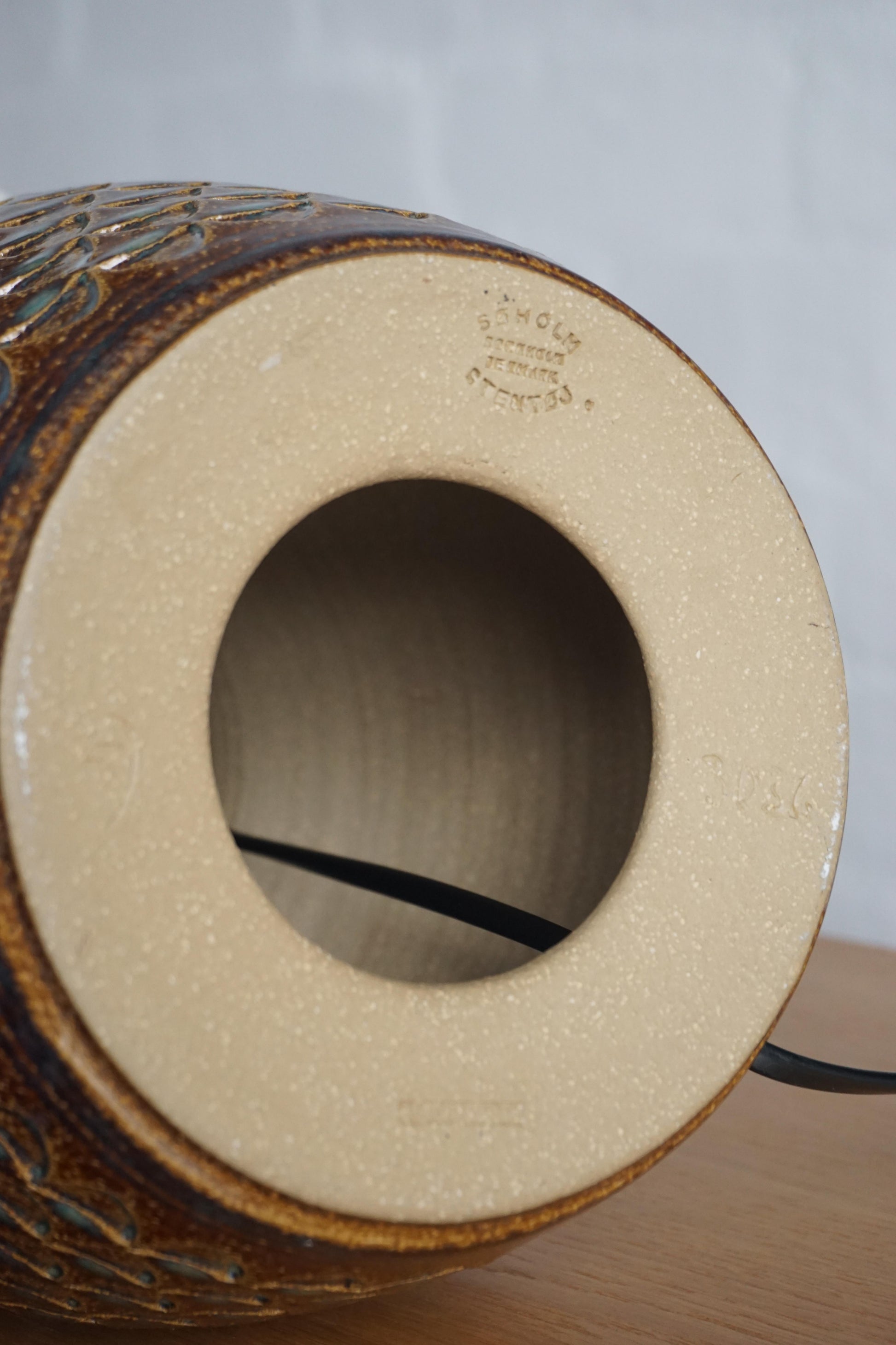 Large ceramic lamp designed by Einar Johansen for Soholm Stentoj c.1970s Denmark. Makers stamp on the base. Fully rewired to Australian standard with new canvas shade.