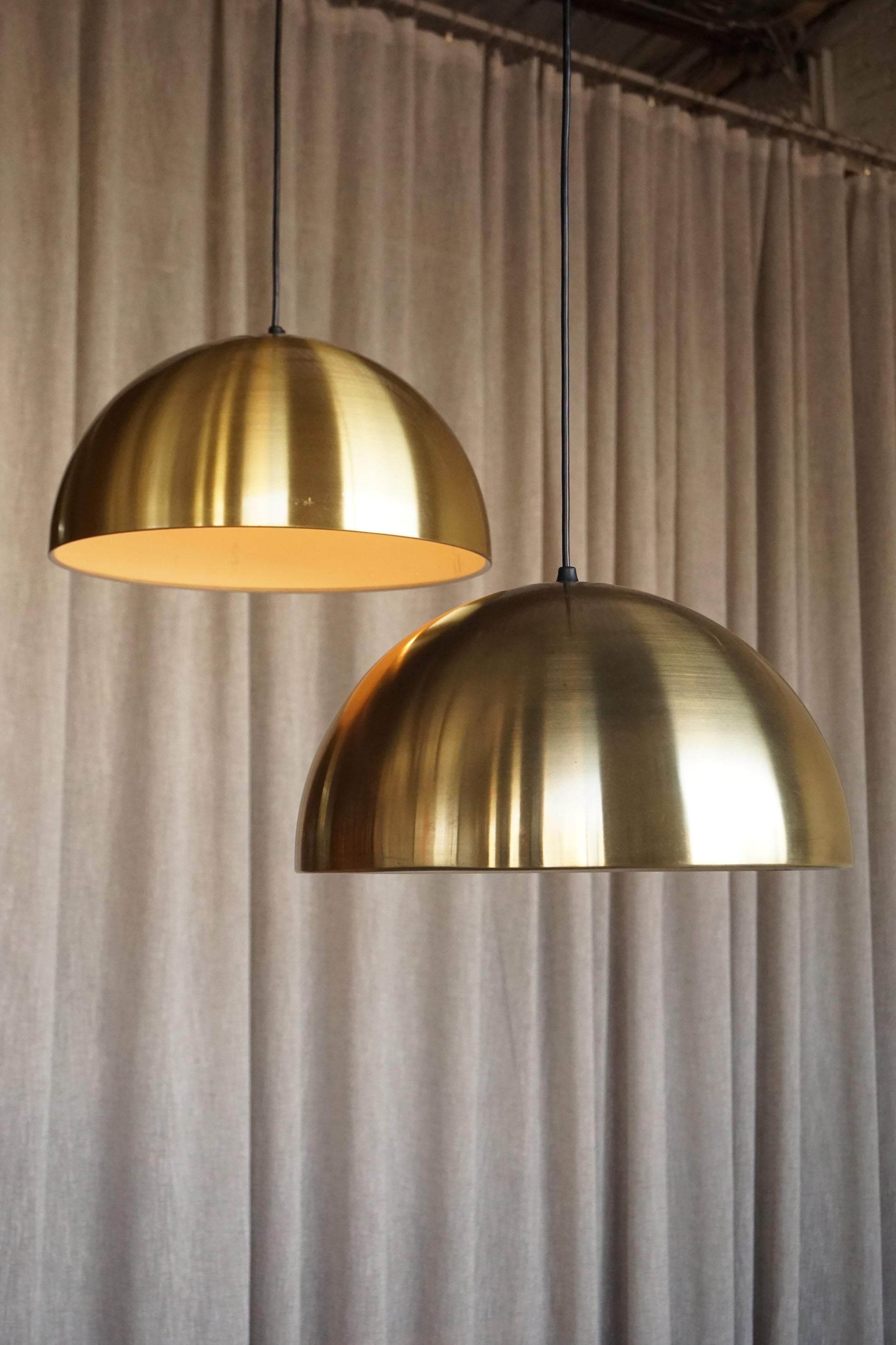 Pair of 'Louisiana' brass pendants designed by Vilhelm Wohlert and Jorgen Bo and manufactured by Louis Poulsen c.1960s Denmark. Solid spun brass has been polished. Light wear and patina to the exterior and some scratches to the interior. Fully rewired to Australian Standard with 2 metres of black flex.