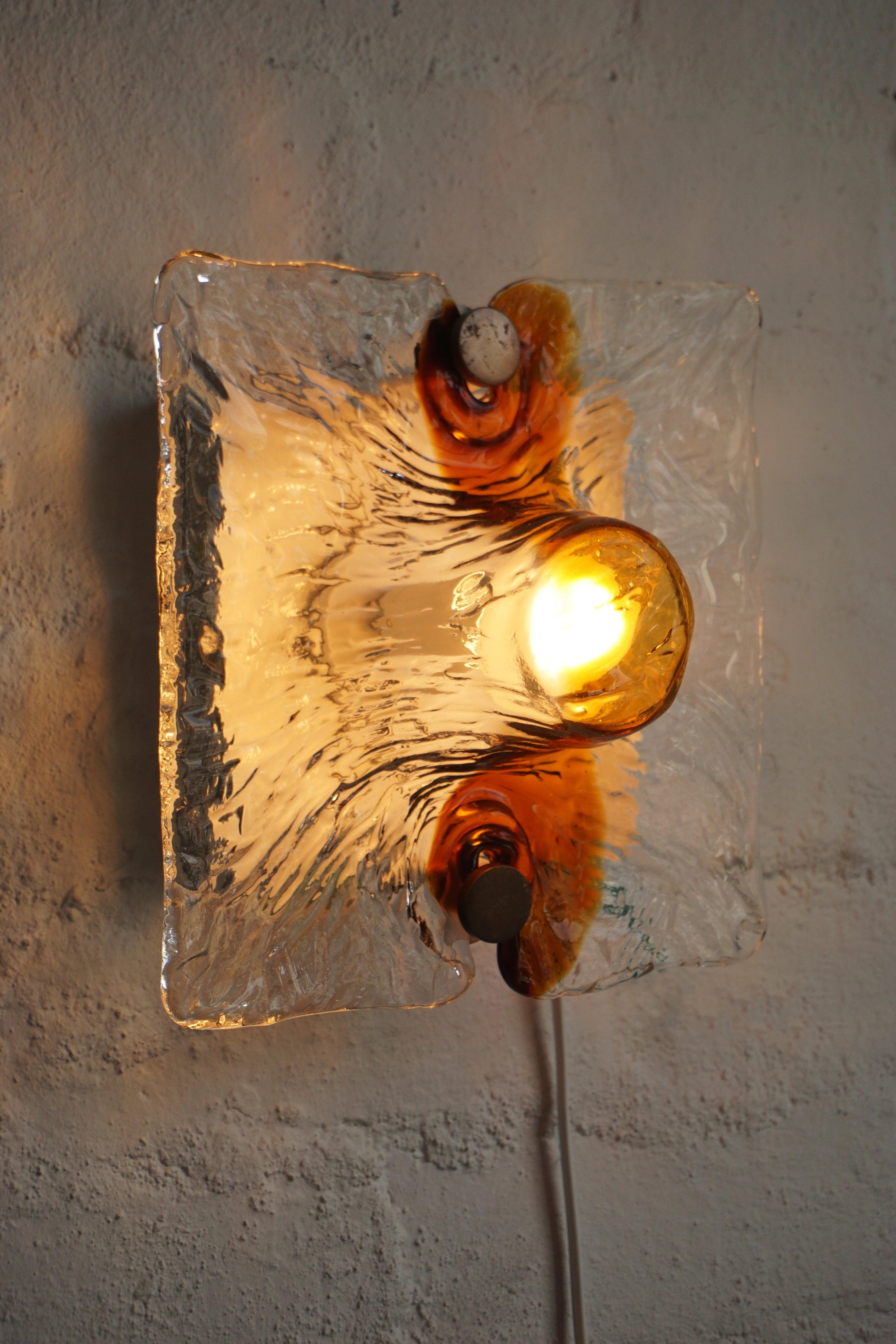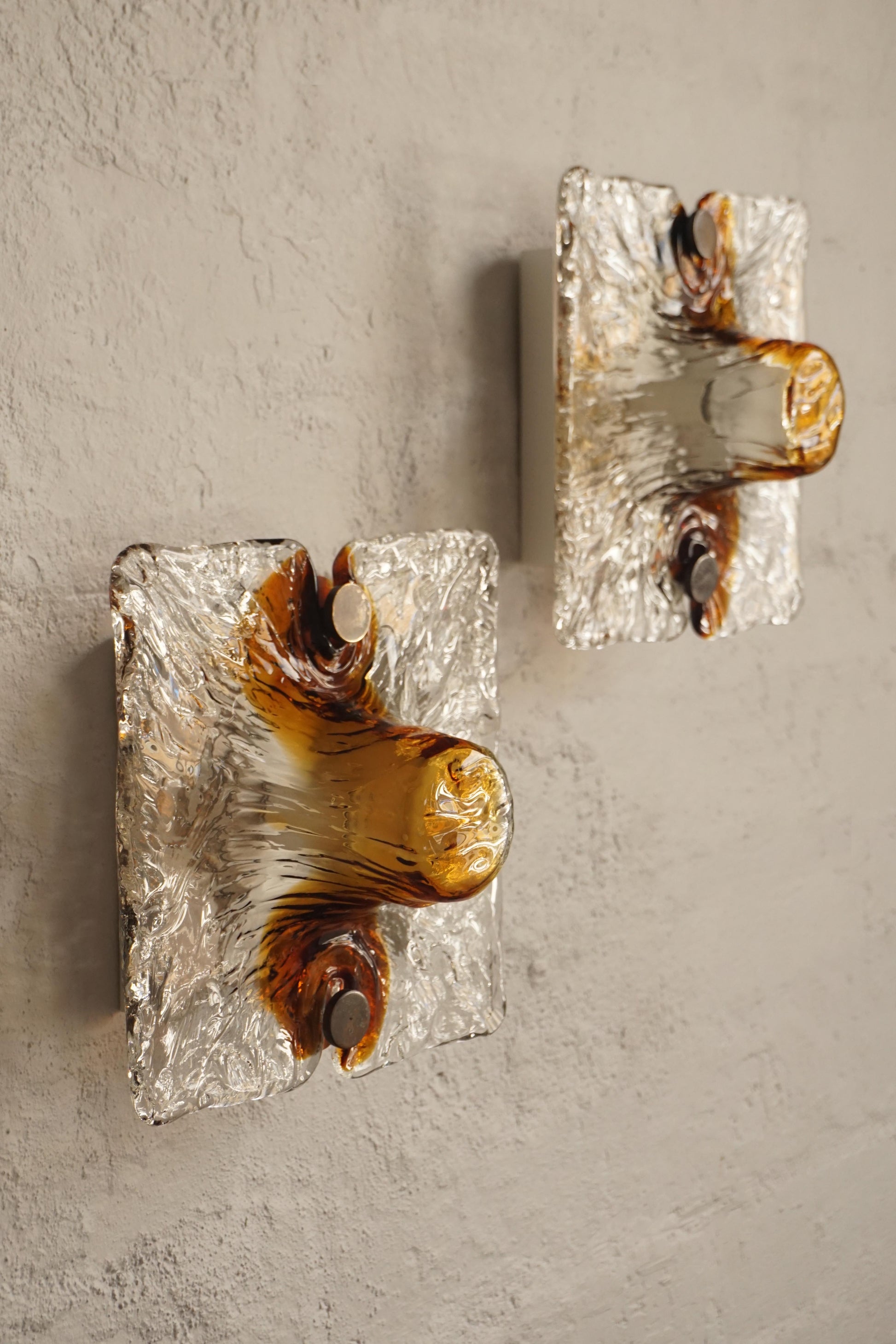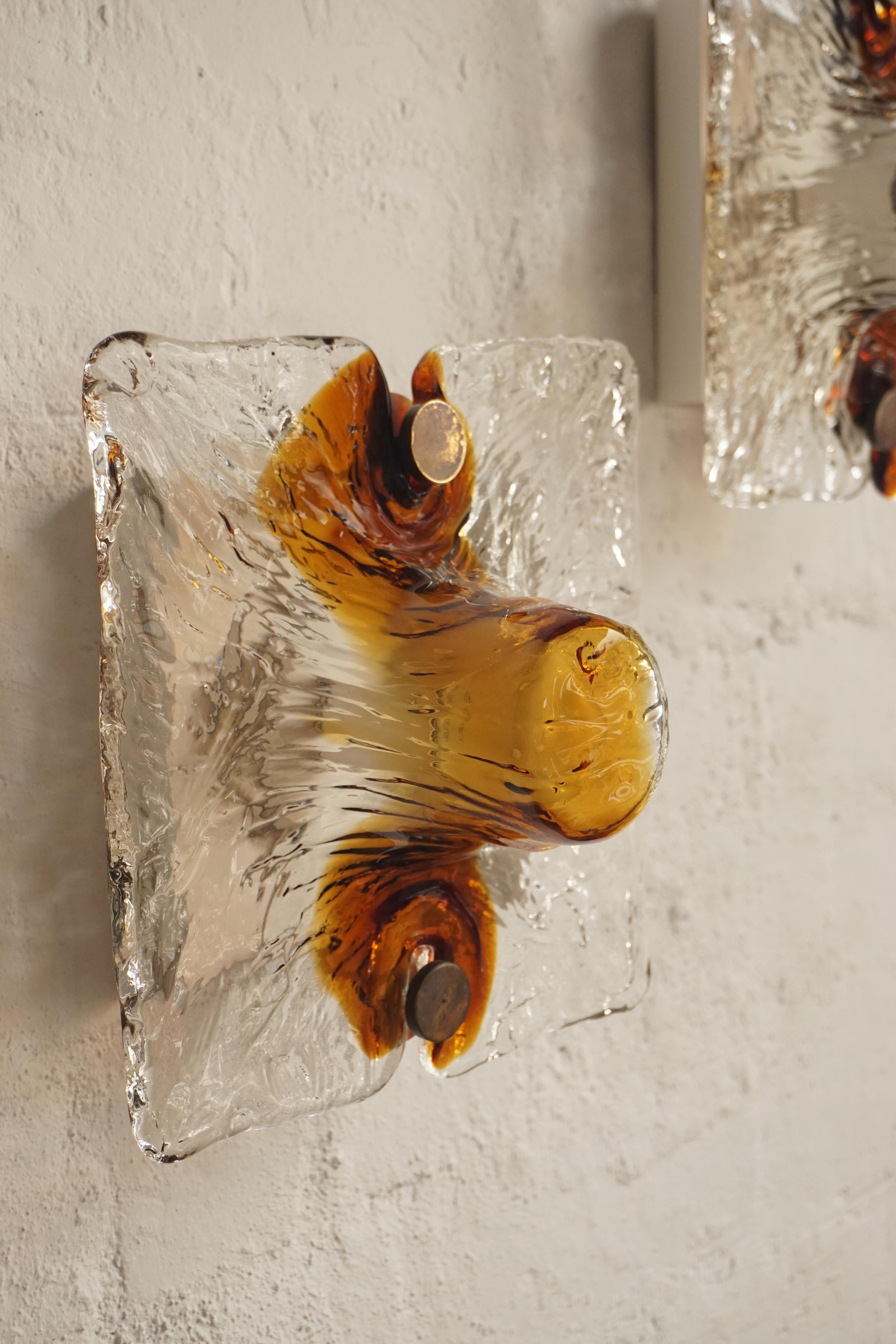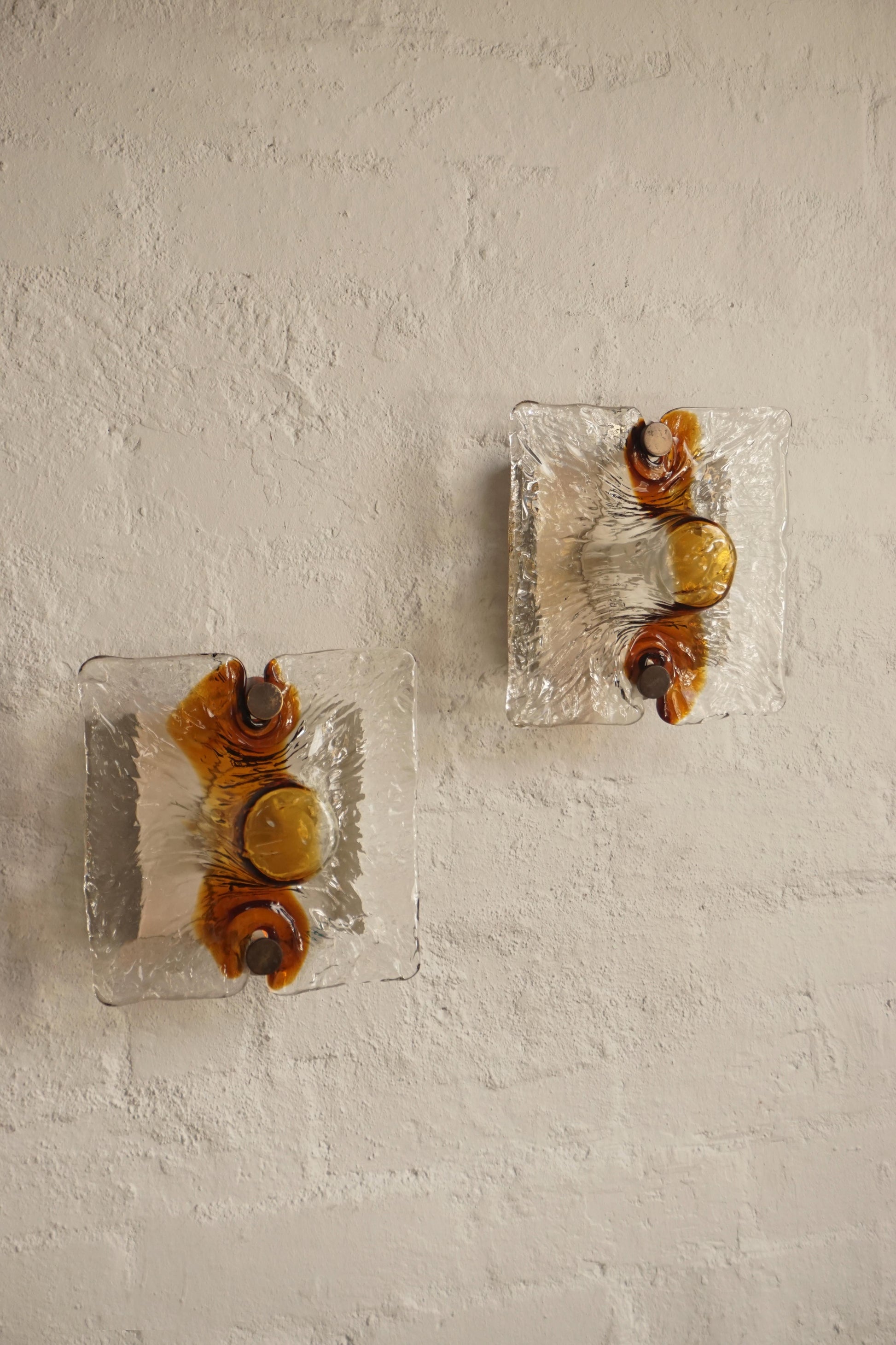 Single Venini sconces also available in amber or blue swirl.