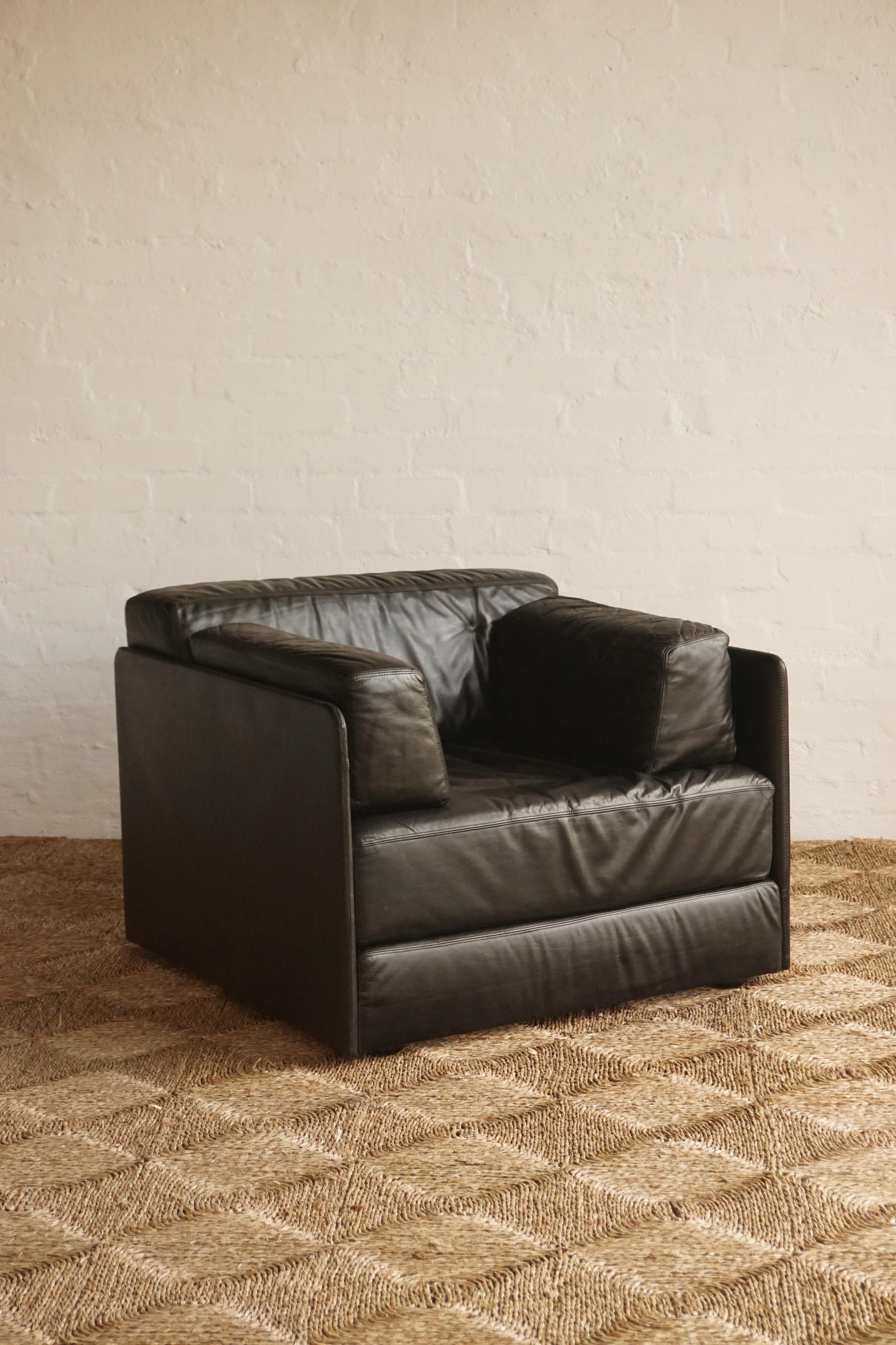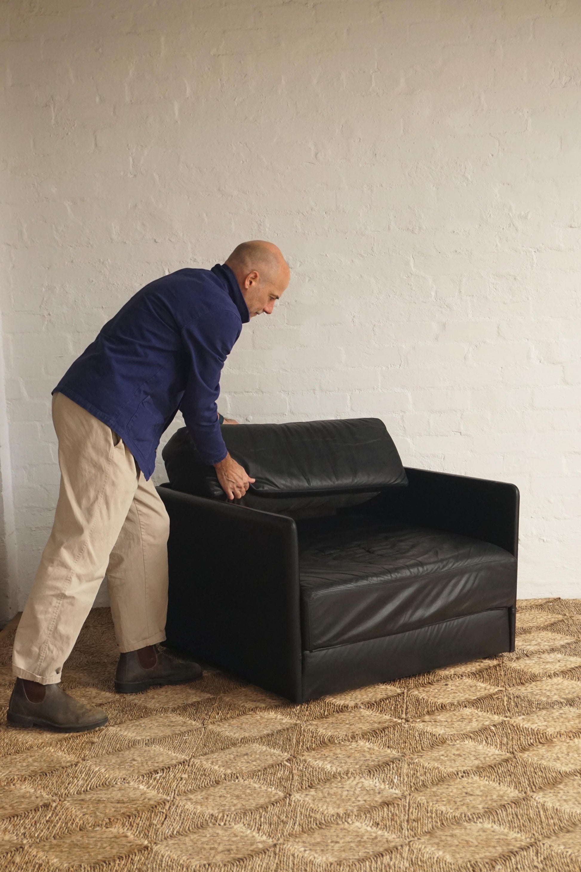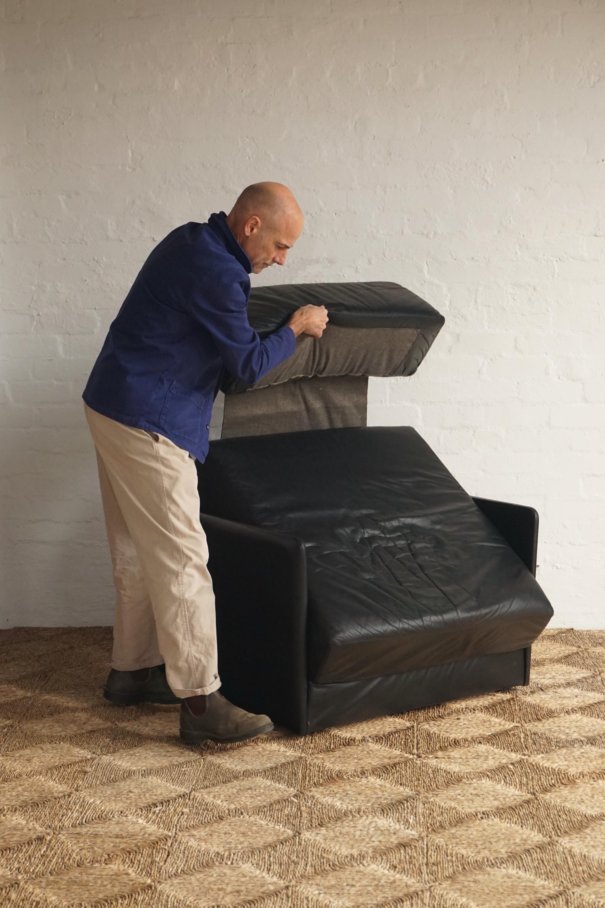 Pair of leather lounge chairs by De Sede, c.1970s Switzerland. Model DS 76. High quality craftsmanship. One of the lounge chairs transforms into a single bed in a few easy steps. Very comfortable. Leather has been cleaned and conditioned.