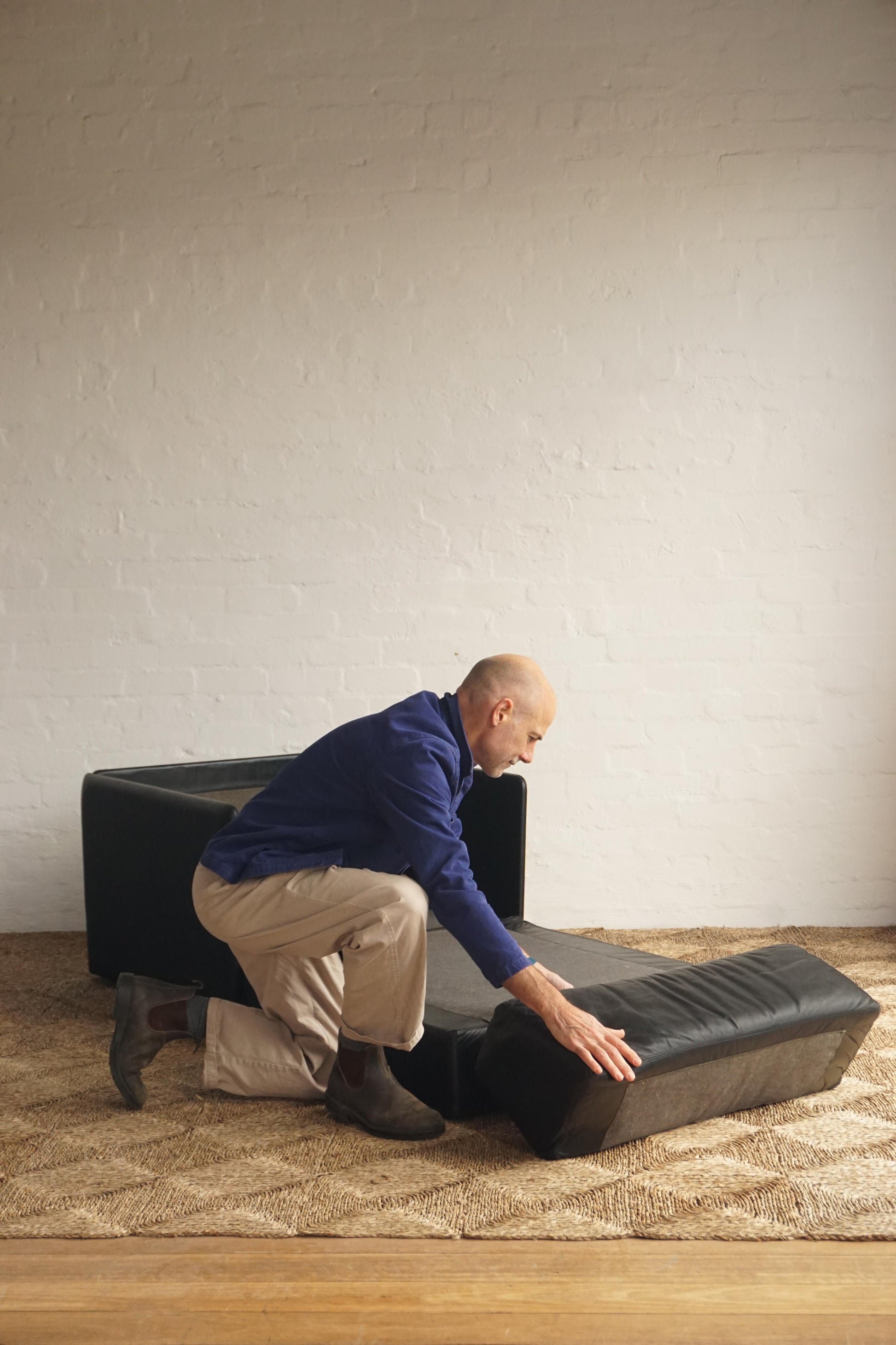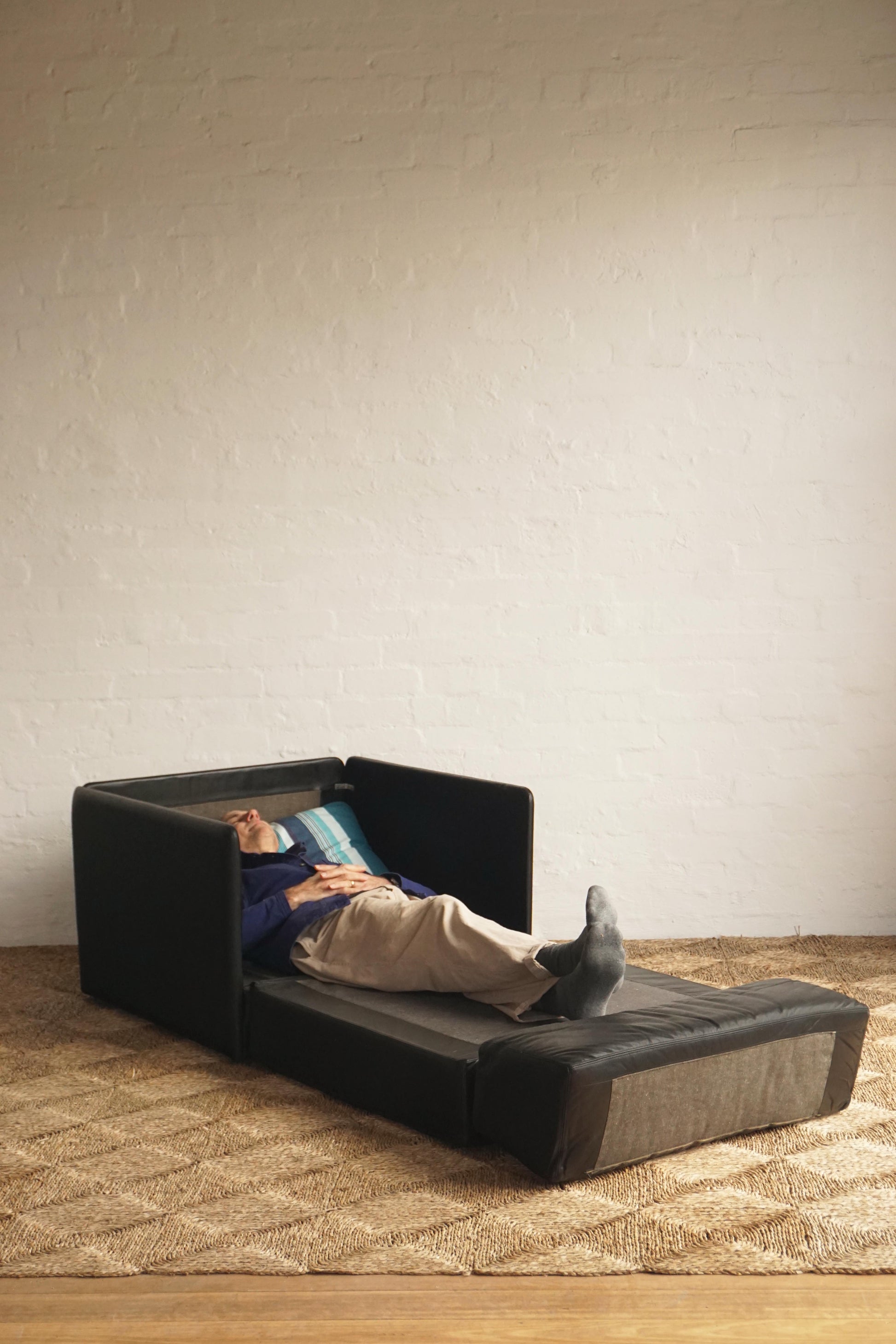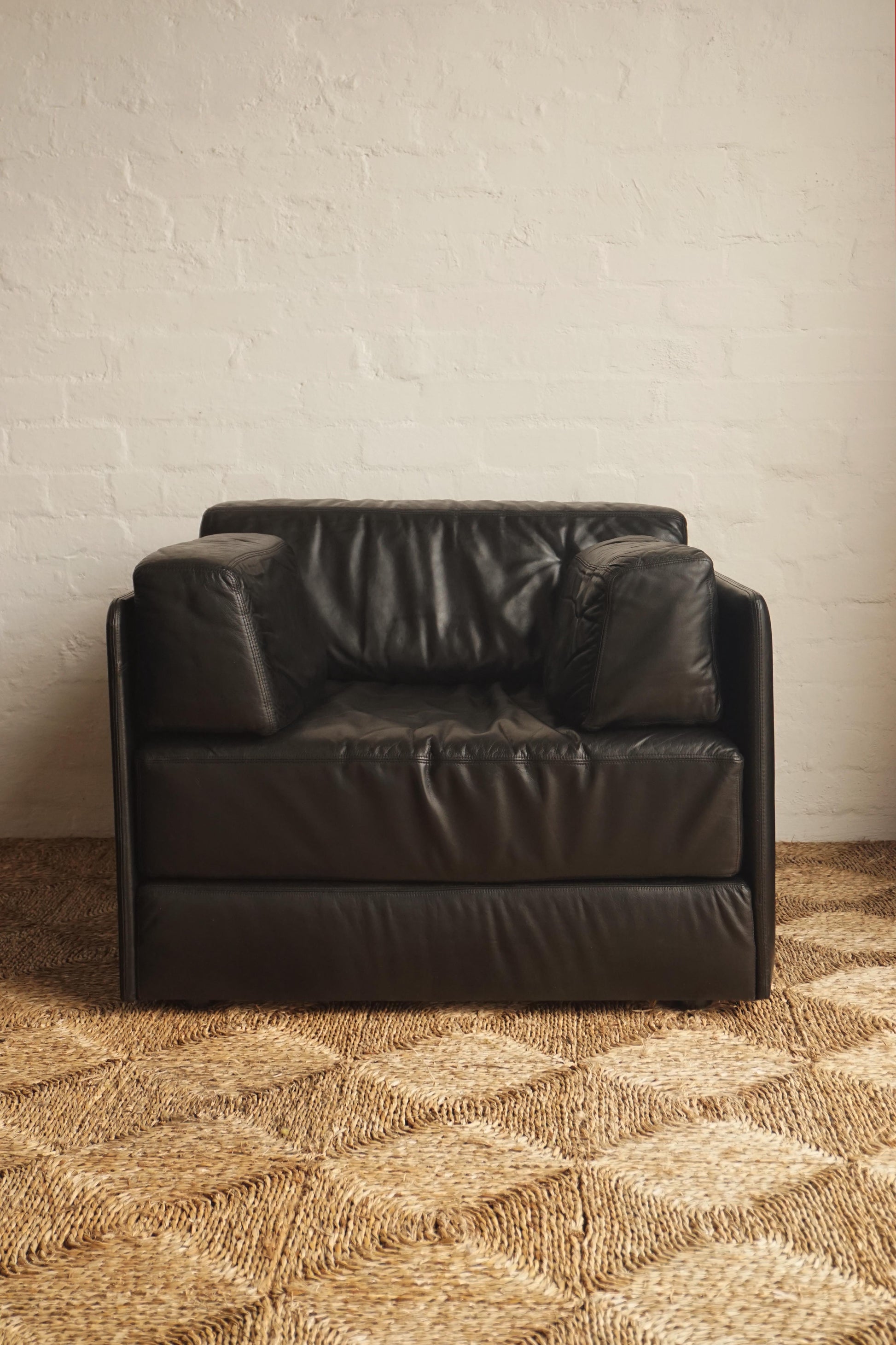 Pair of leather lounge chairs by De Sede, c.1970s Switzerland. Model DS 76. High quality craftsmanship. One of the lounge chairs transforms into a single bed in a few easy steps. Very comfortable. Leather has been cleaned and conditioned.