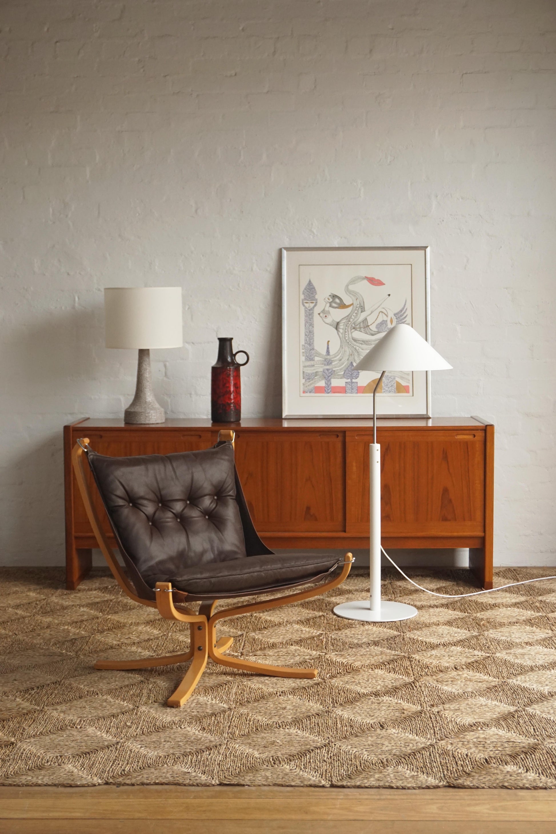 Chrome and lacquered acrylic stem. Heavy steel base. All new paint. Floor lamp has been rewired to Australian Standard. Internal On/off switch.