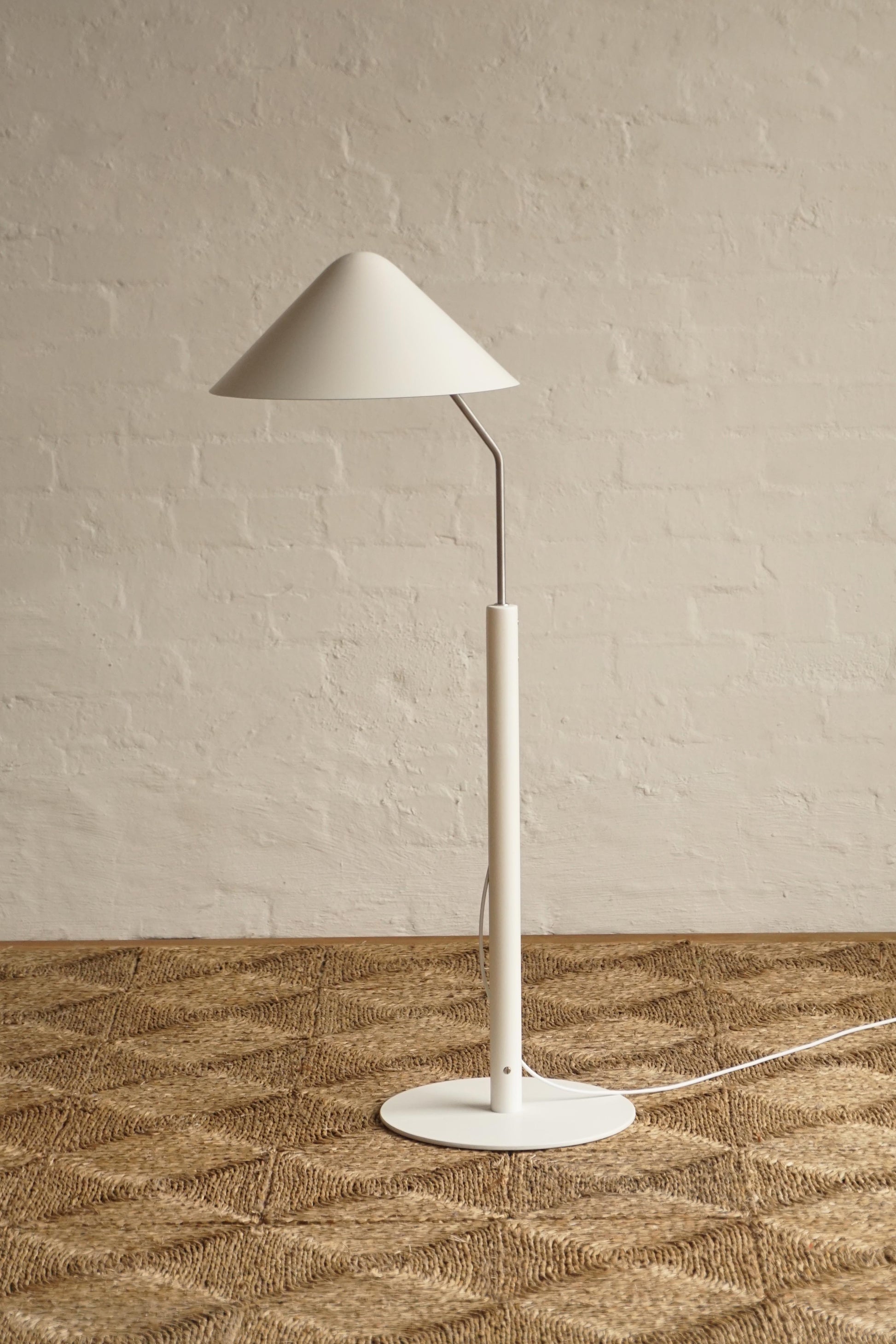 VIP Swing floor lamp designed in 1982 by Danish architect Jorgen Gammelgaard for Pandul, Denmark. Arm swivels 360 degrees. Shade can be adjusted for direct or indirect light.