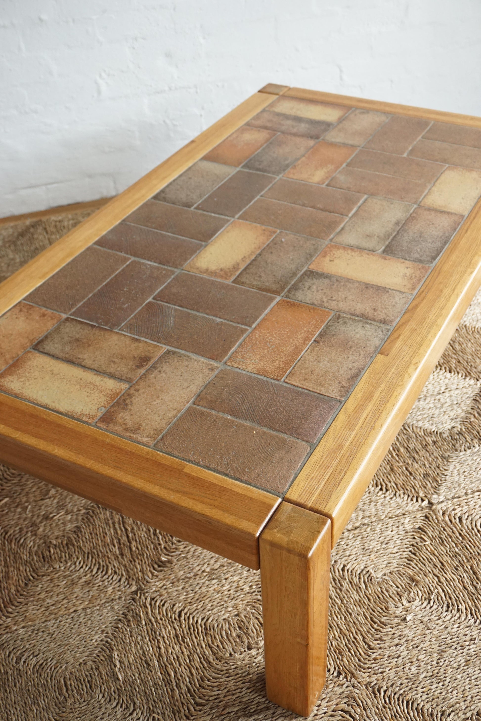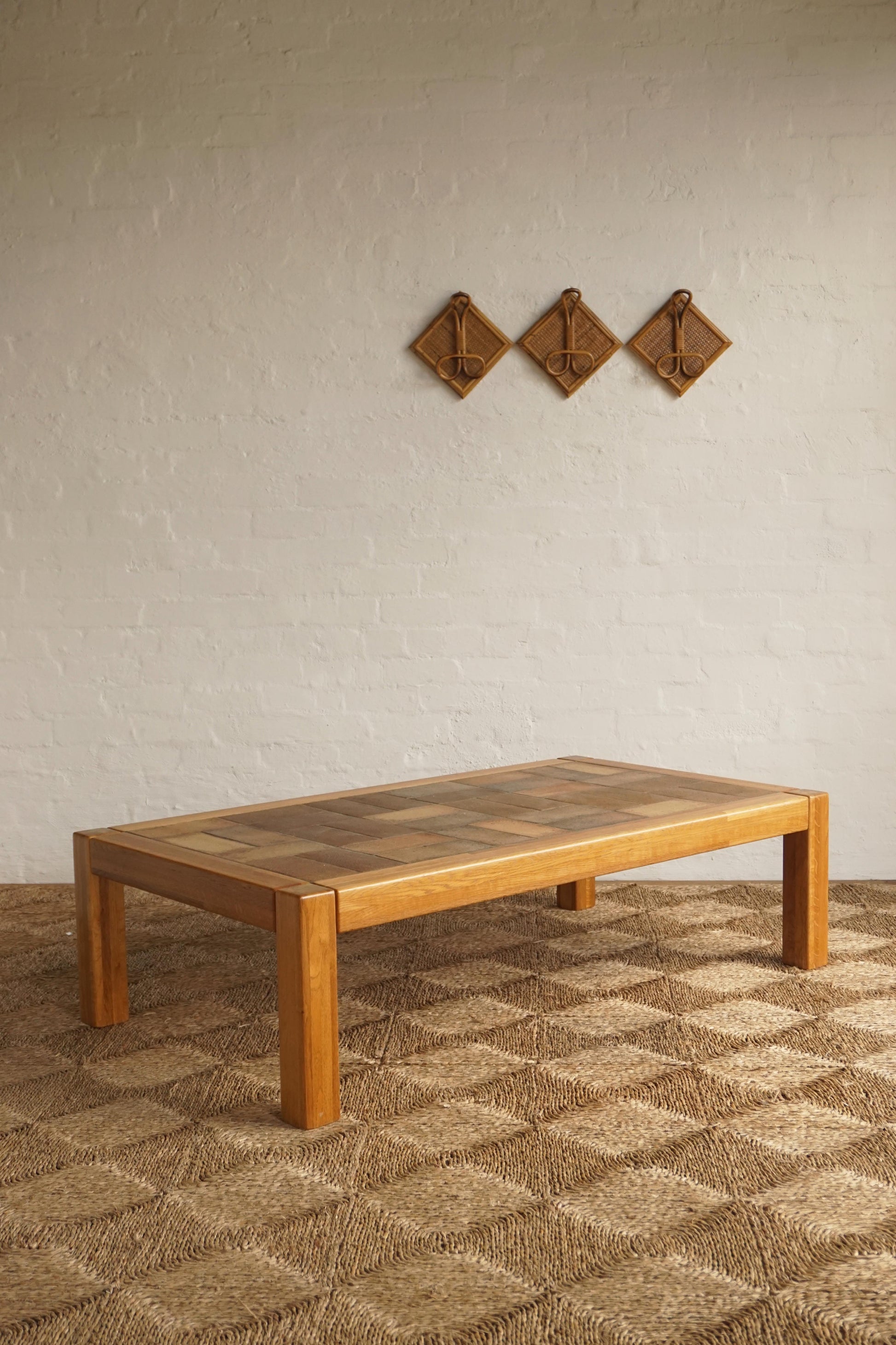 Large Brutalist tiled coffee table by Sallingboe c.1970s Denmark. Fully restored oak frame. Handmade tiles. Signed 'Sallingboe'.