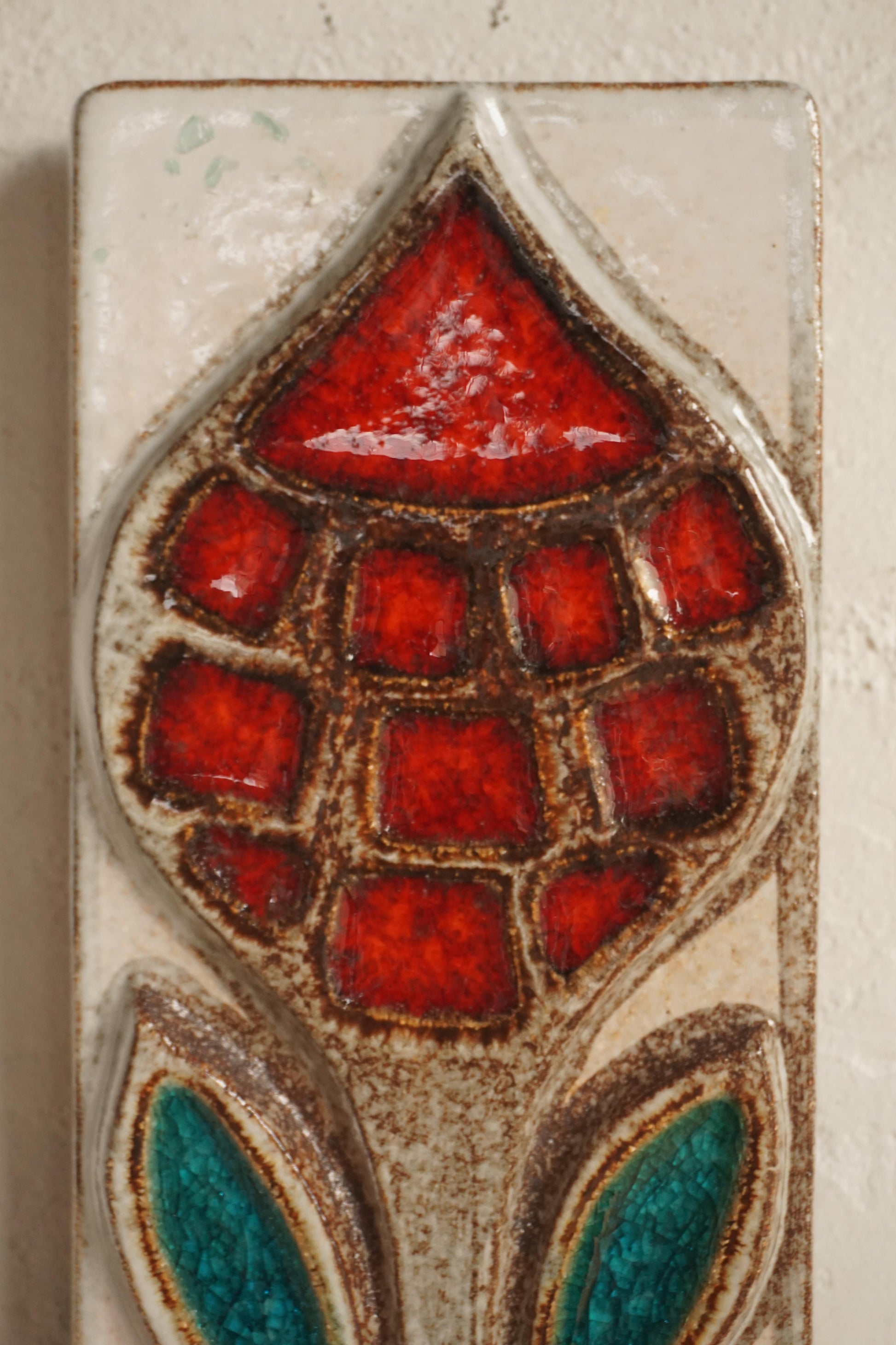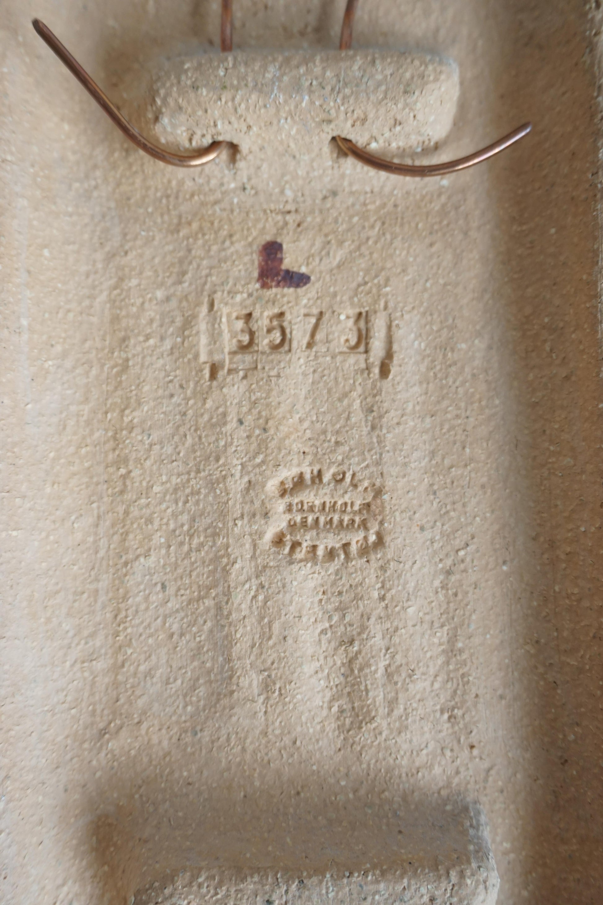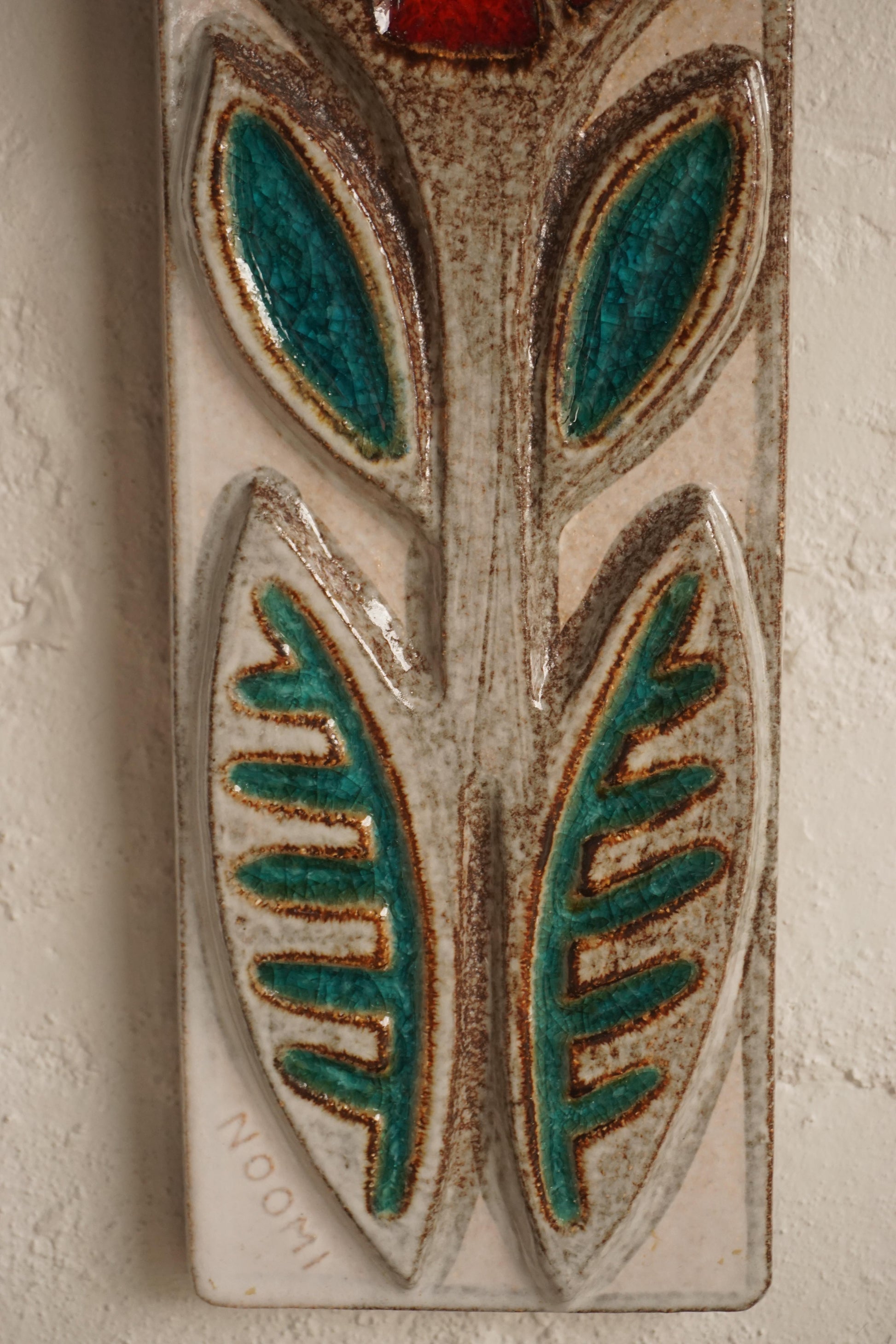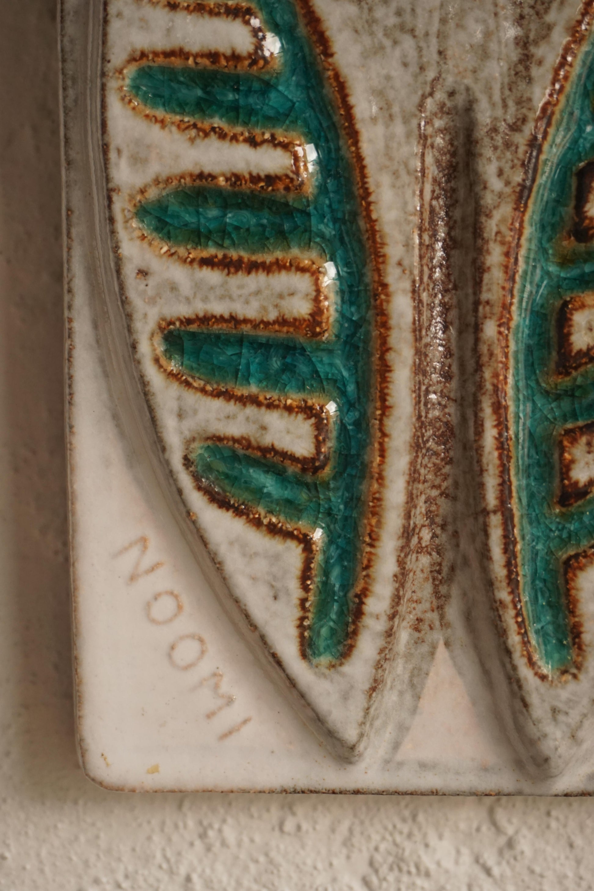 Wall plaque by ceramicist Noomi Backhausen for Soholm Stentoj c.1960s Denmark. Lovely glossy glaze. Makers mark and hanging hook on the rear.