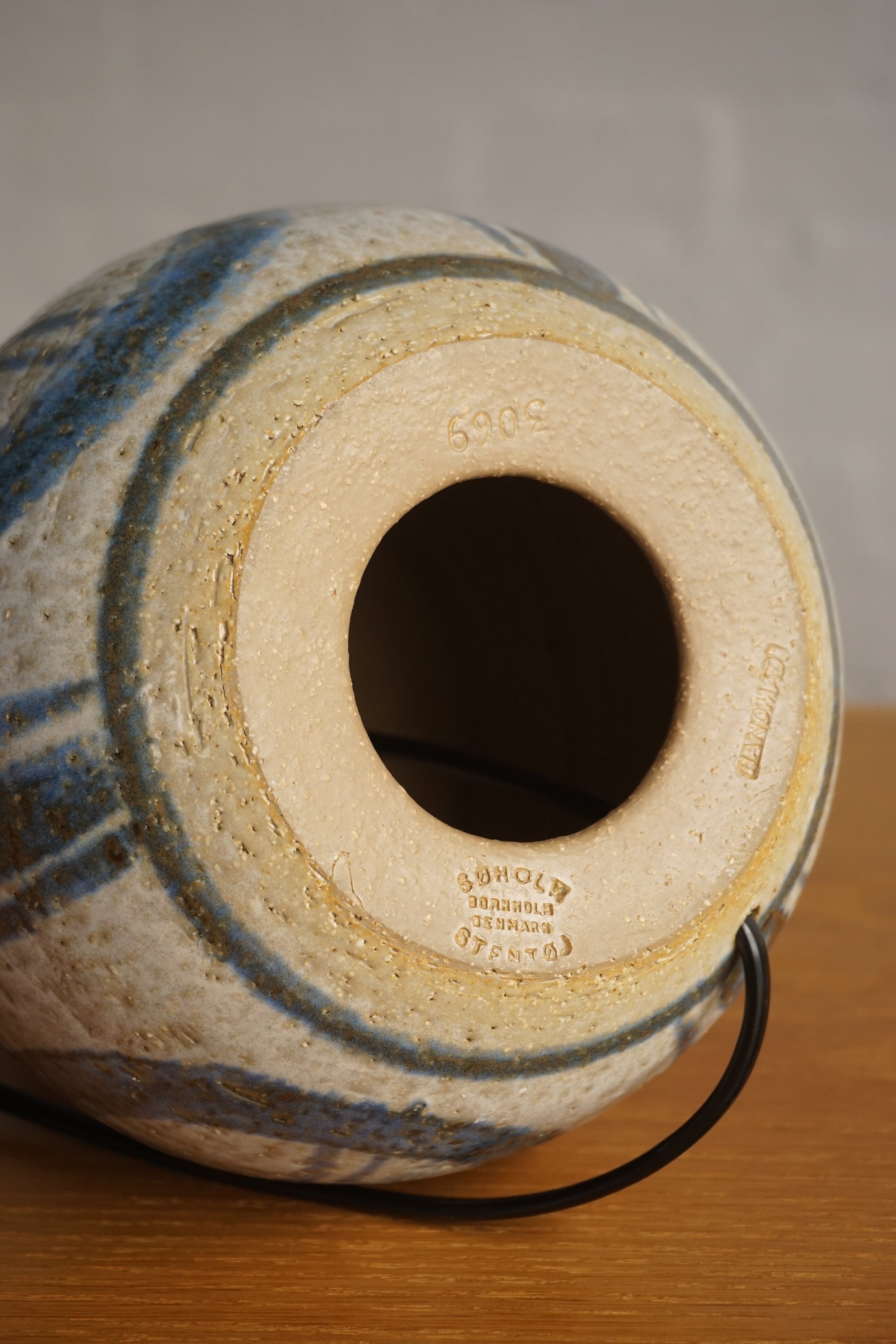 Ceramic lamp by Soholm Stentoj c.1960s Denmark. Makers stamp on the base. Fully rewired to Australian standard with new canvas shade.