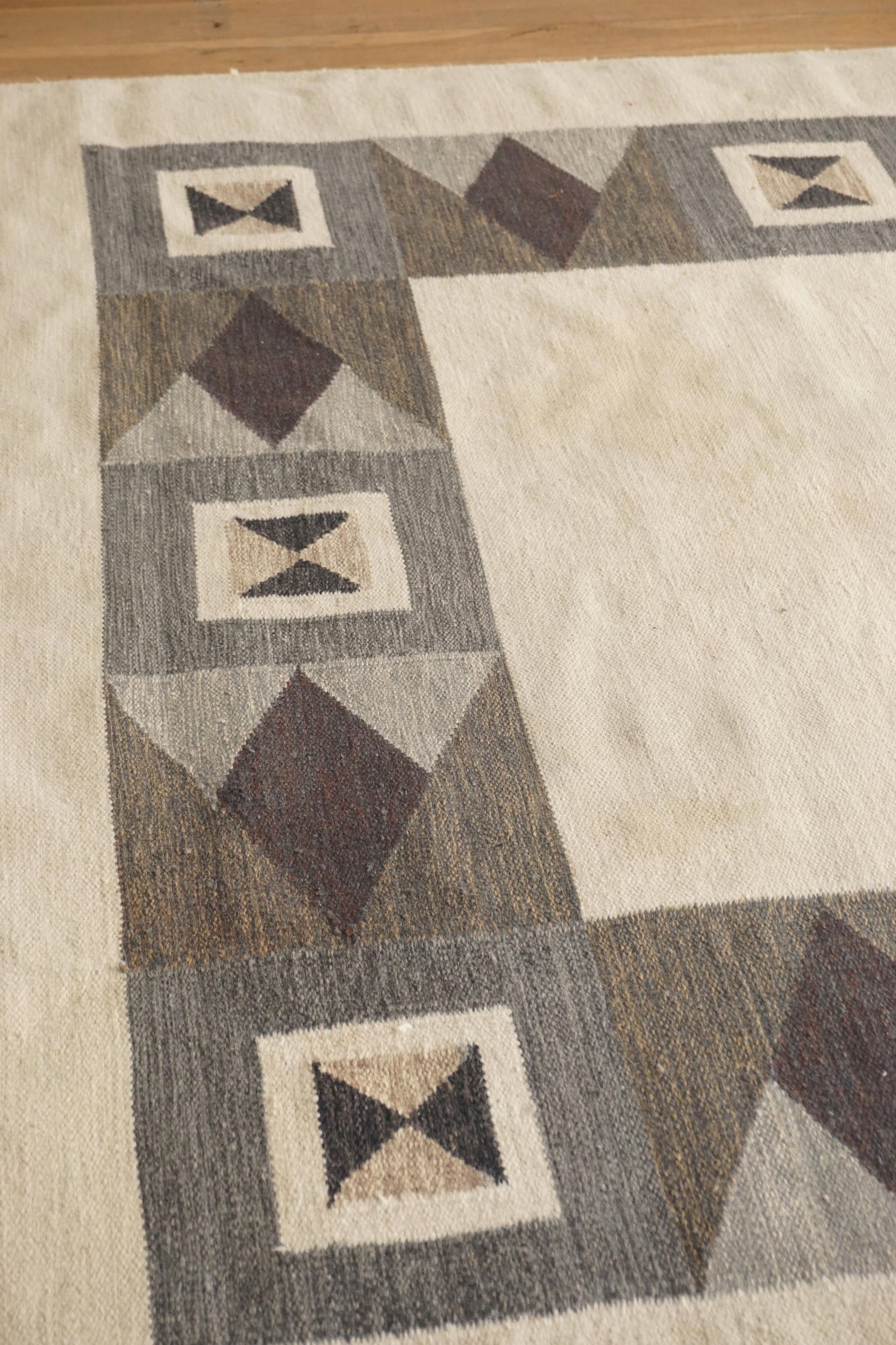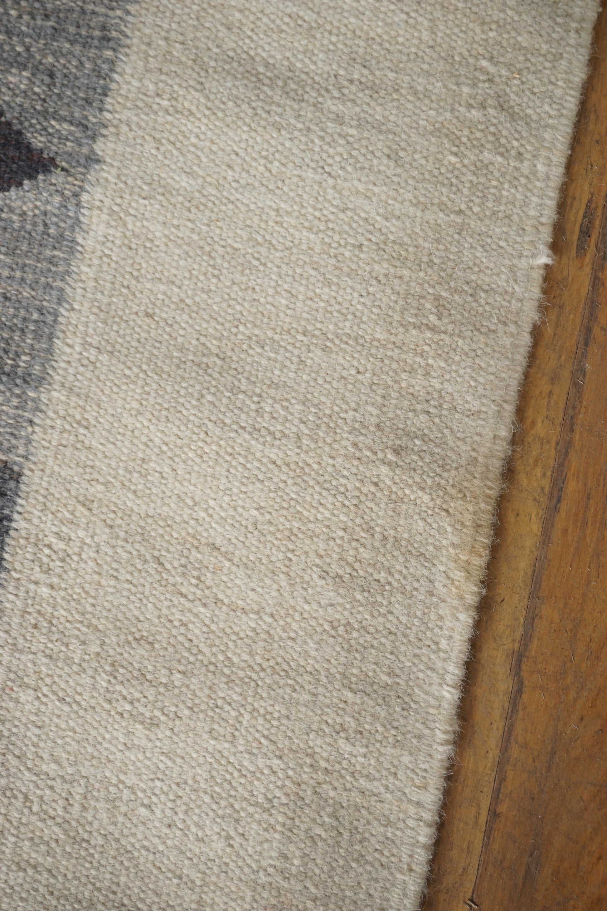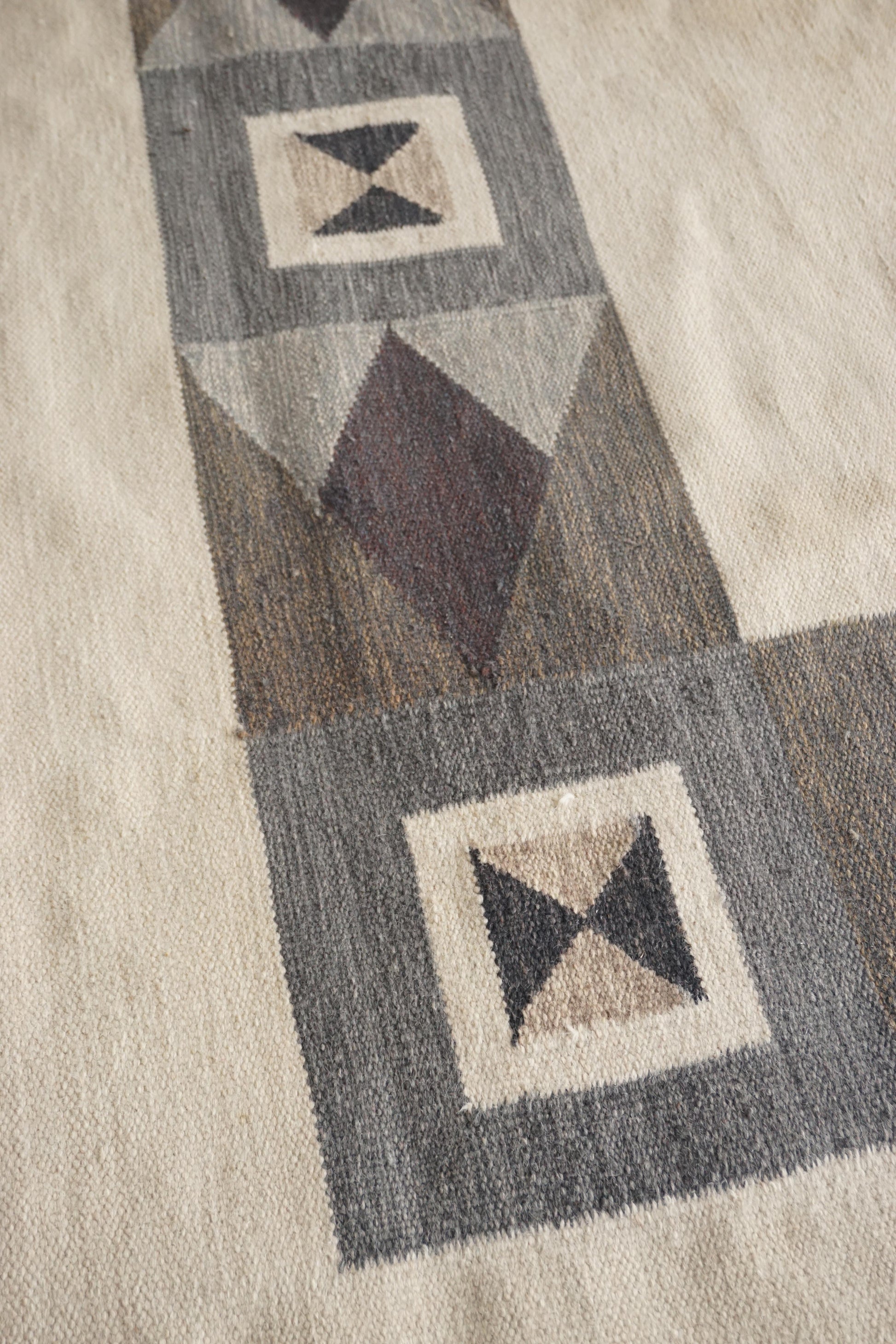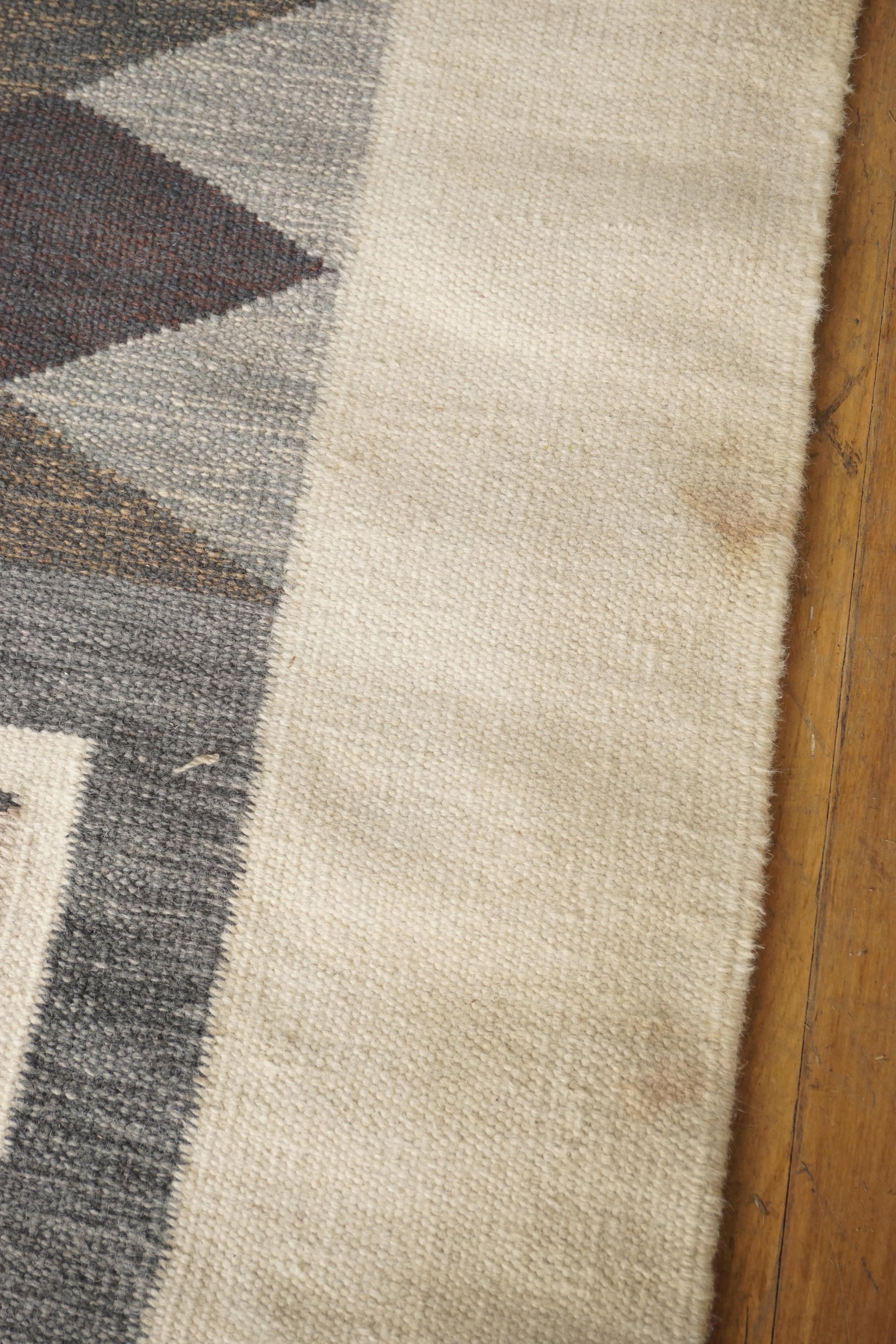 Large handwoven wool rollakan from Sweden. Has been professionally cleaned, some marks as shown in photos.