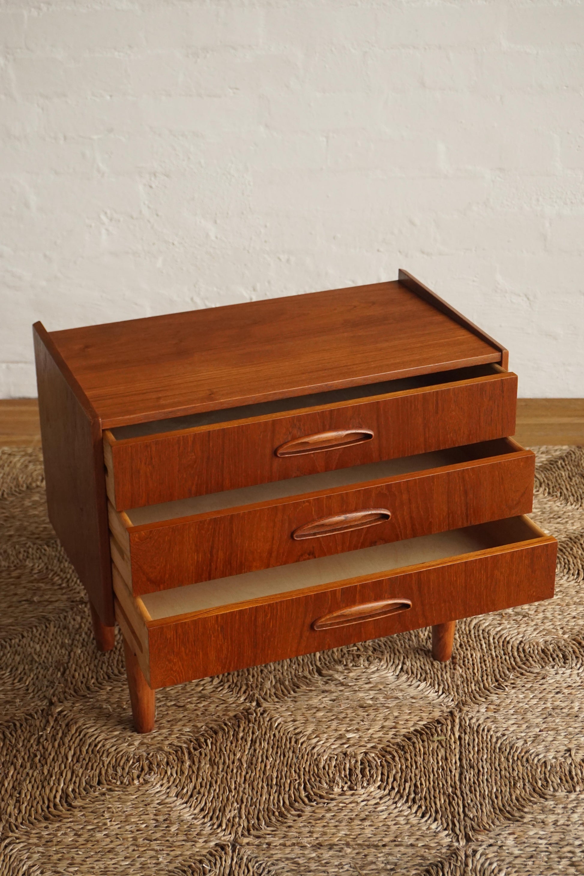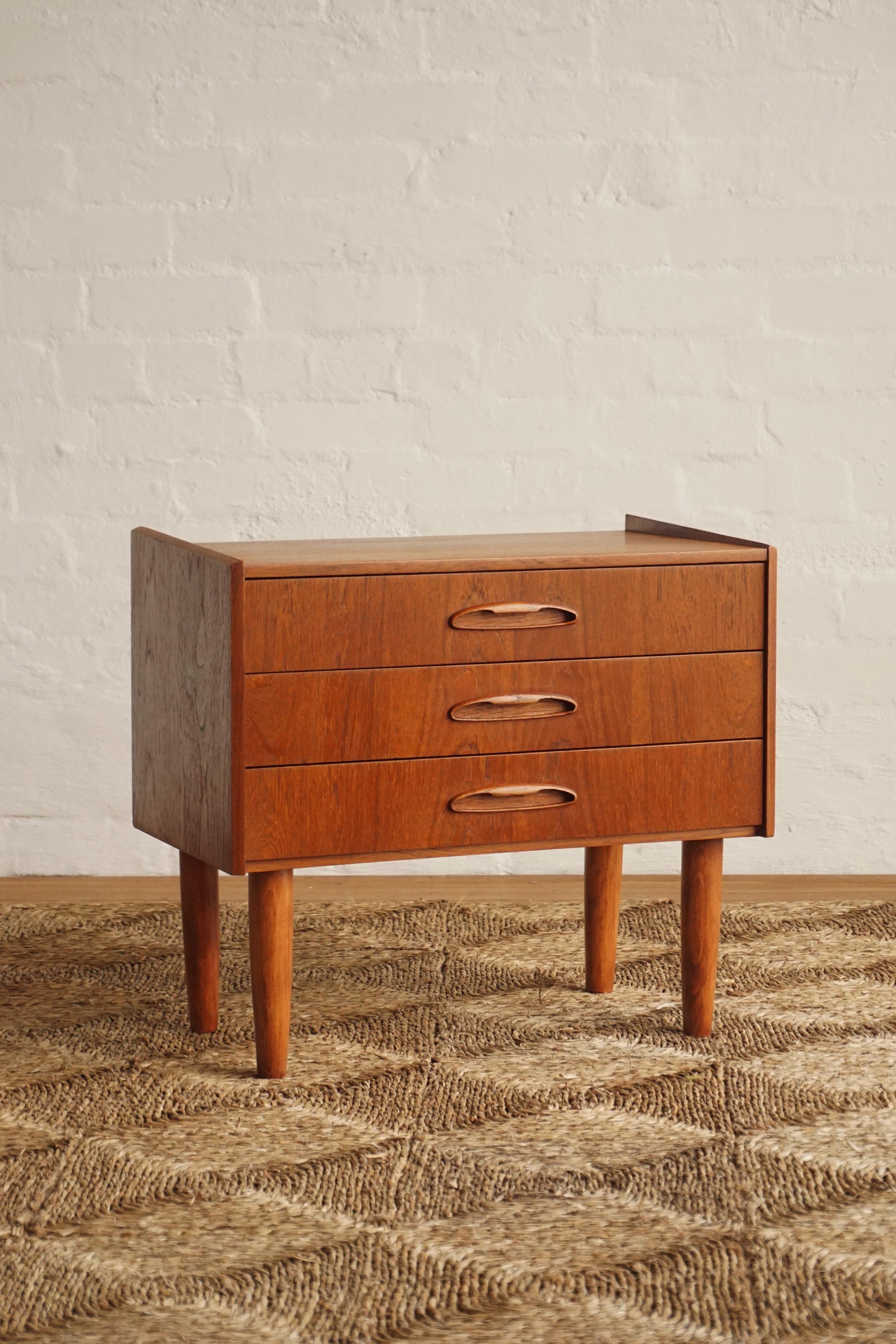 Small teak bedside drawers c.1960s Denmark. Fully restored by us a few years ago. Recently cleaned and finished with Danish oil. In great condition.