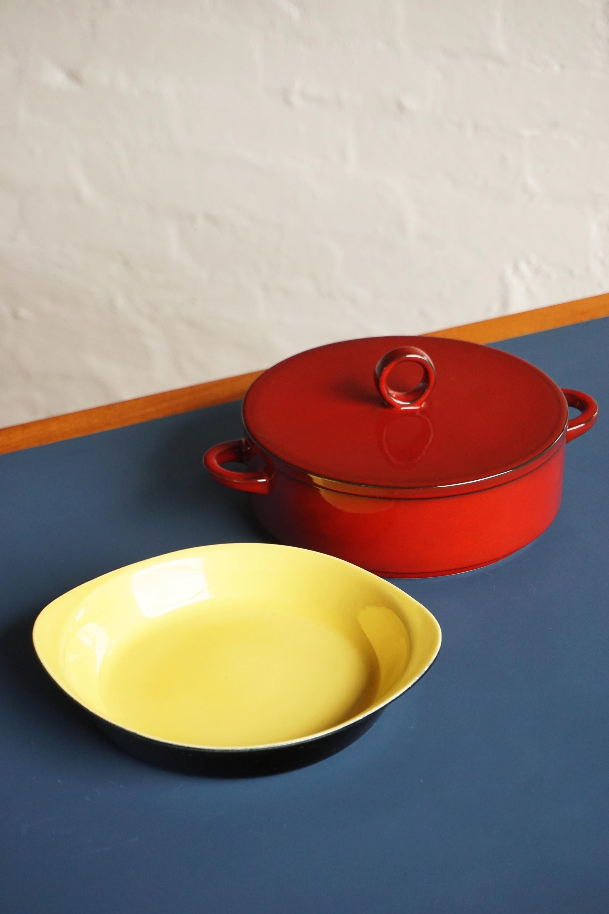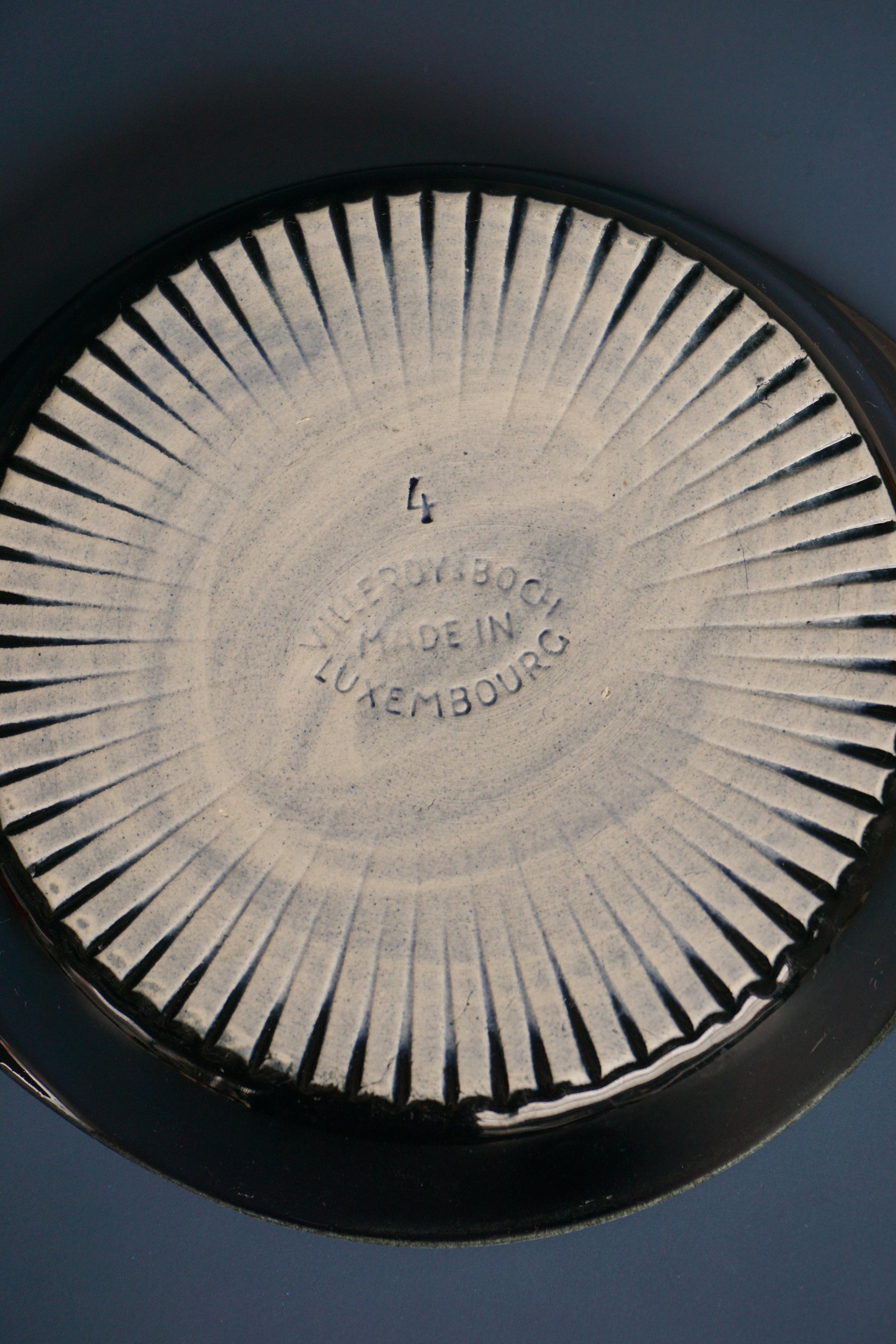 Ceramic dish by Villeroy and Boch c.1960s Luxembourg. Pastel yellow and black glaze. Makers mark on base.